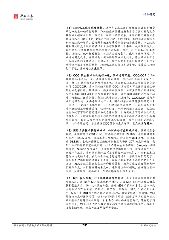 本报告涵盖了化工行业多个方面的内容,主要包括: