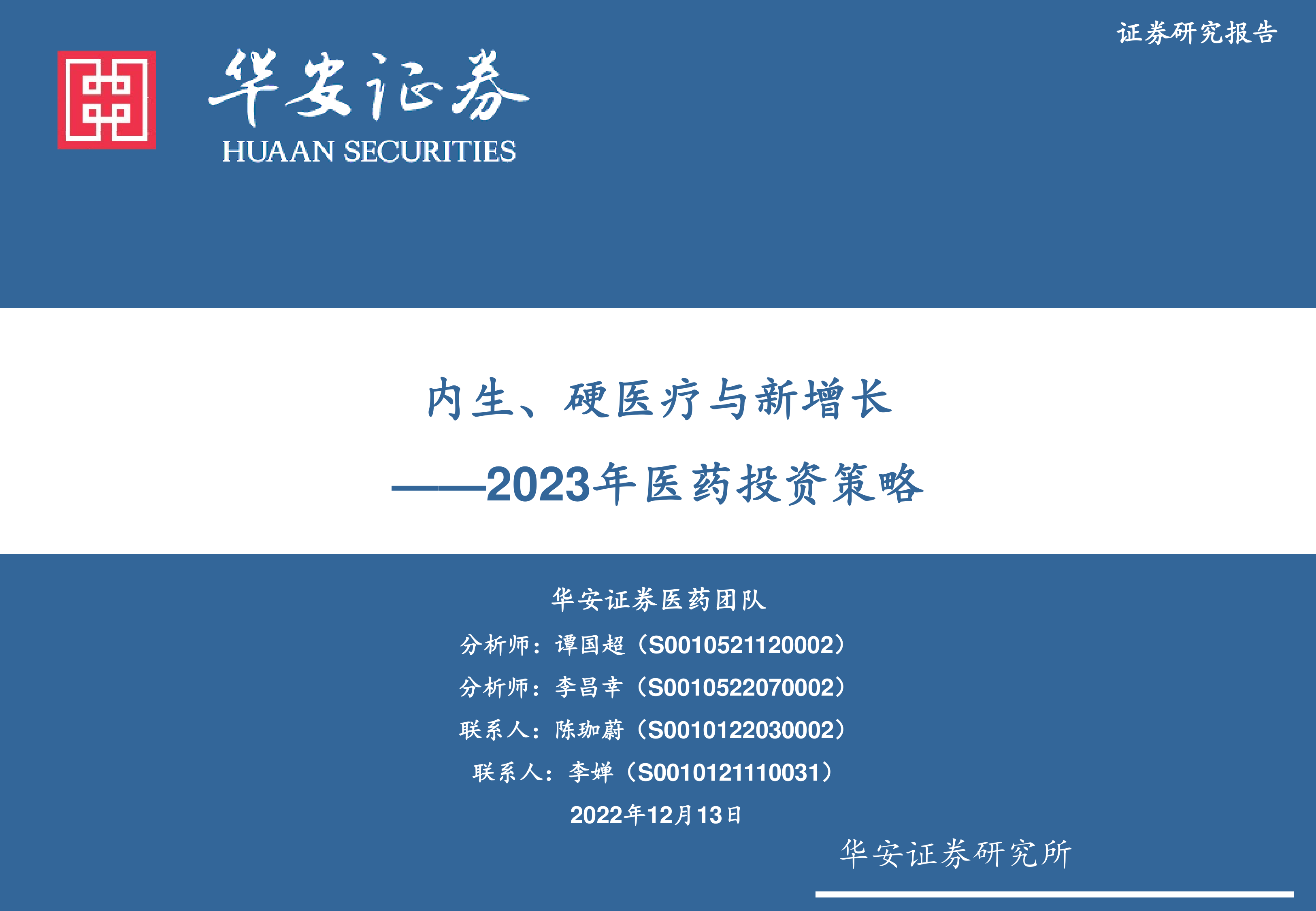 华安证券医药团队建议投资者在2023年采取“主线+结构”的投资思路: