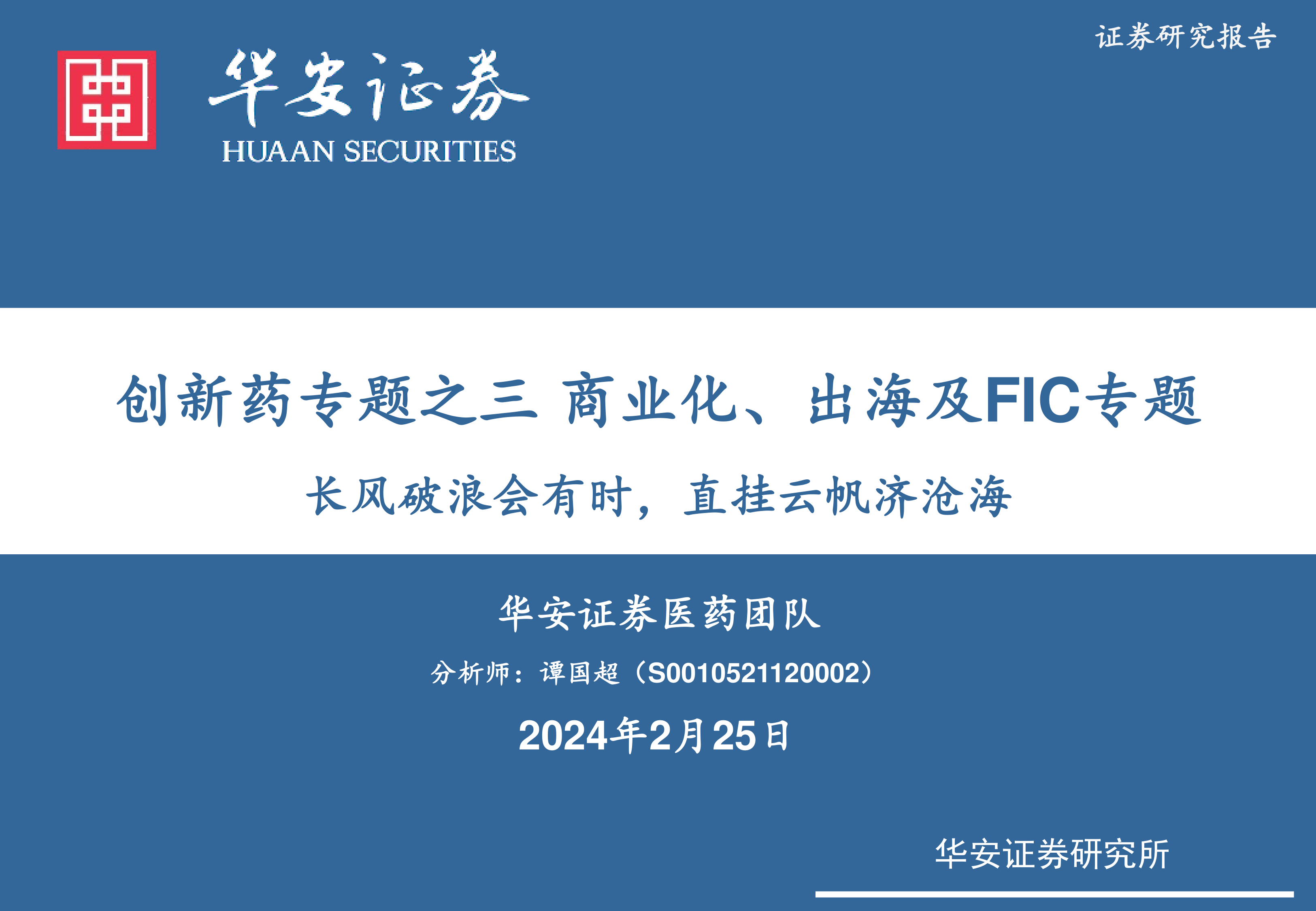 创新药专题之三商业化、出海及FIC专题:长风破浪会有时,直挂云帆济沧海
