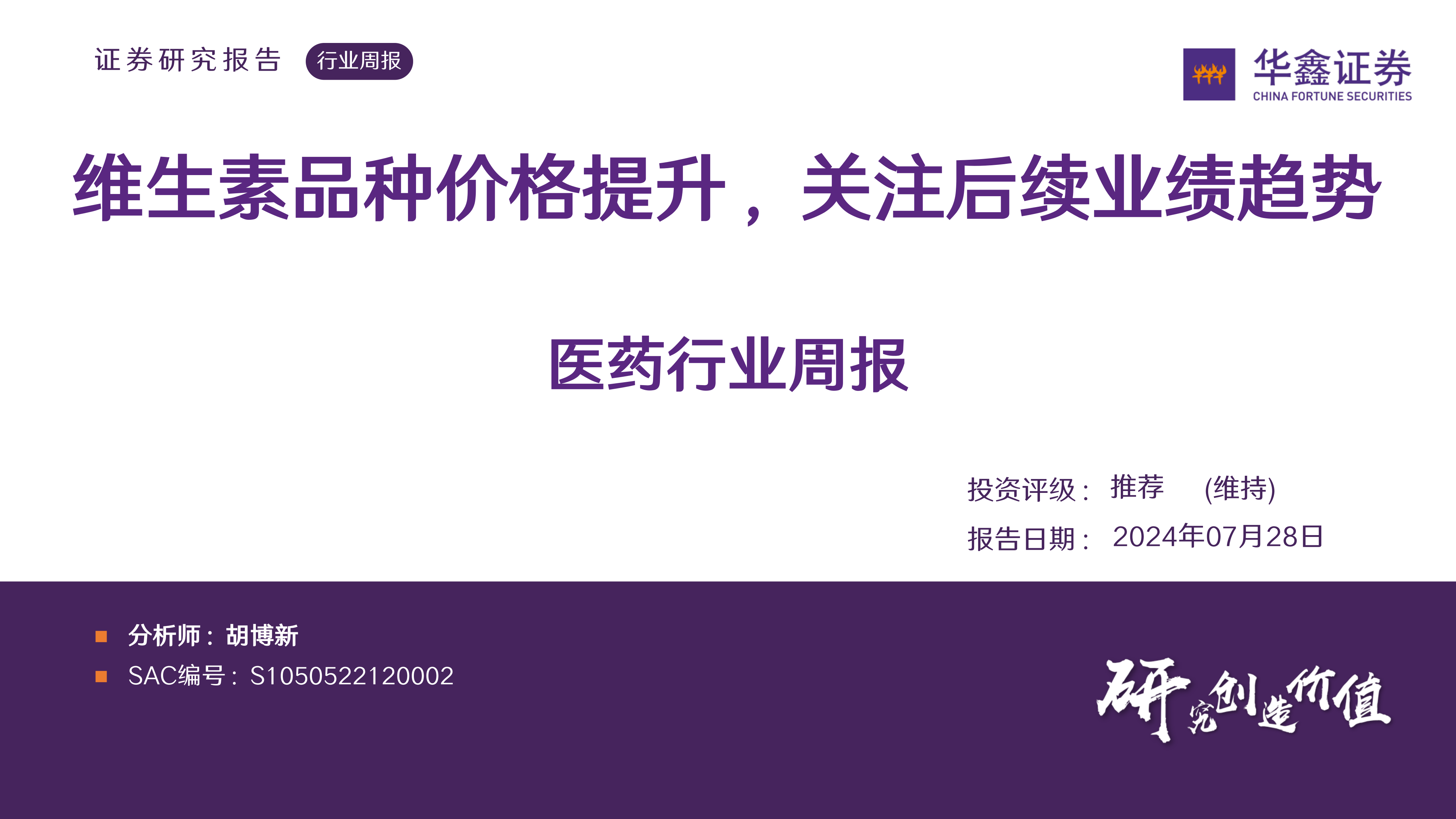 医药行业周报:维生素品种价格提升,关注后续业绩趋势