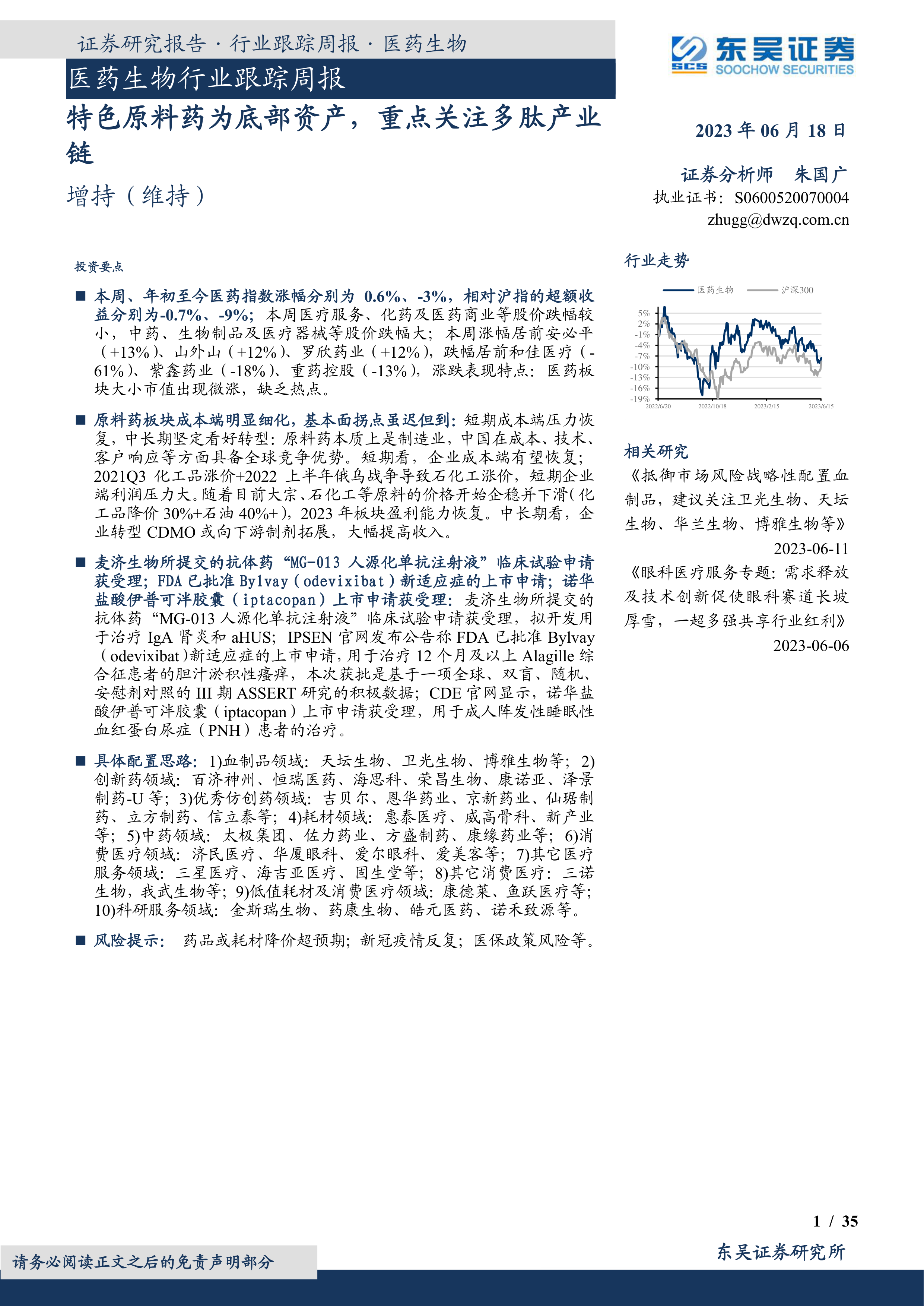 医药生物行业跟踪周报:特色原料药为底部资产,重点关注多肽产业链