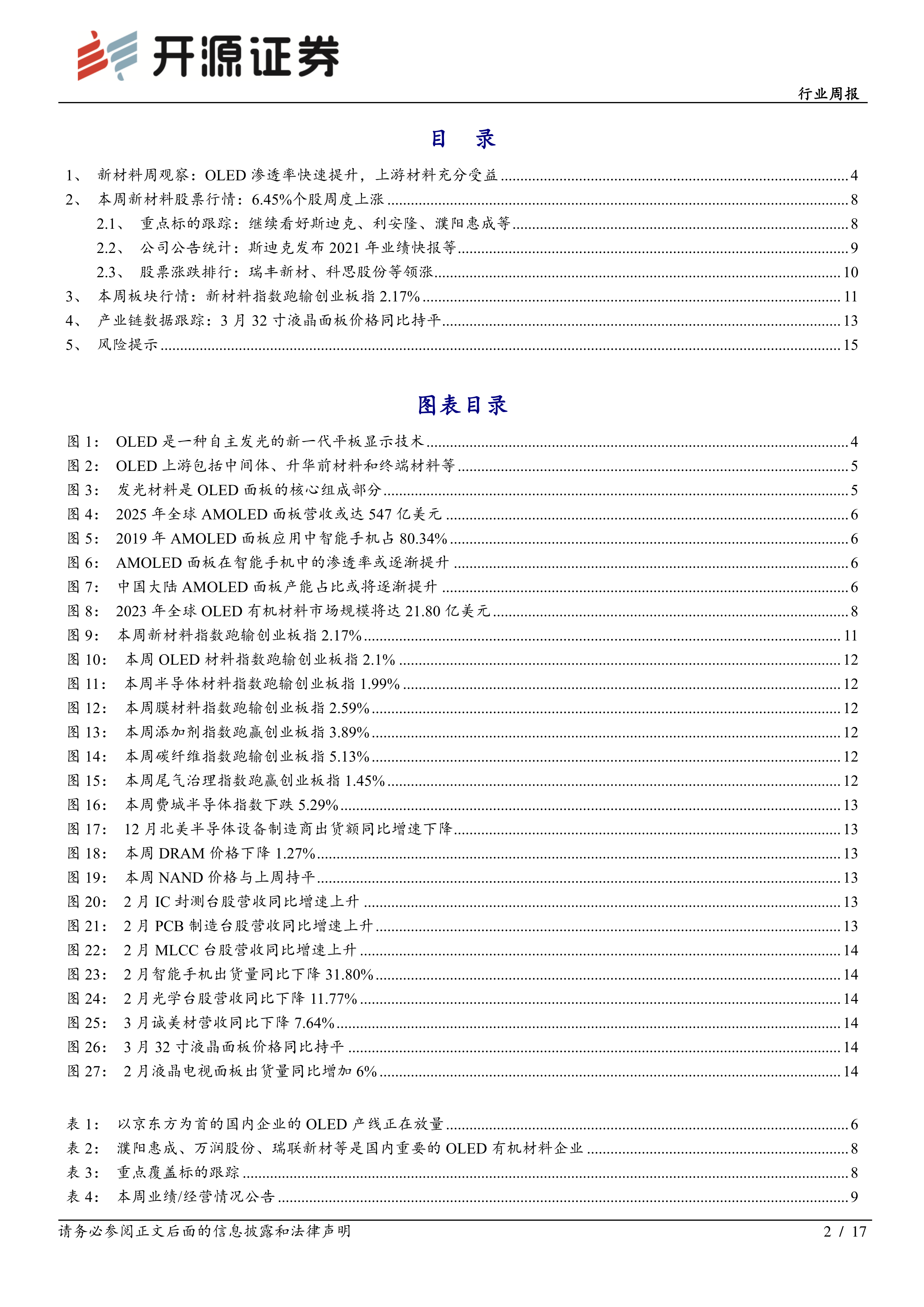 新材料周观察: OLED 渗透率快速提升,上游材料充分受益