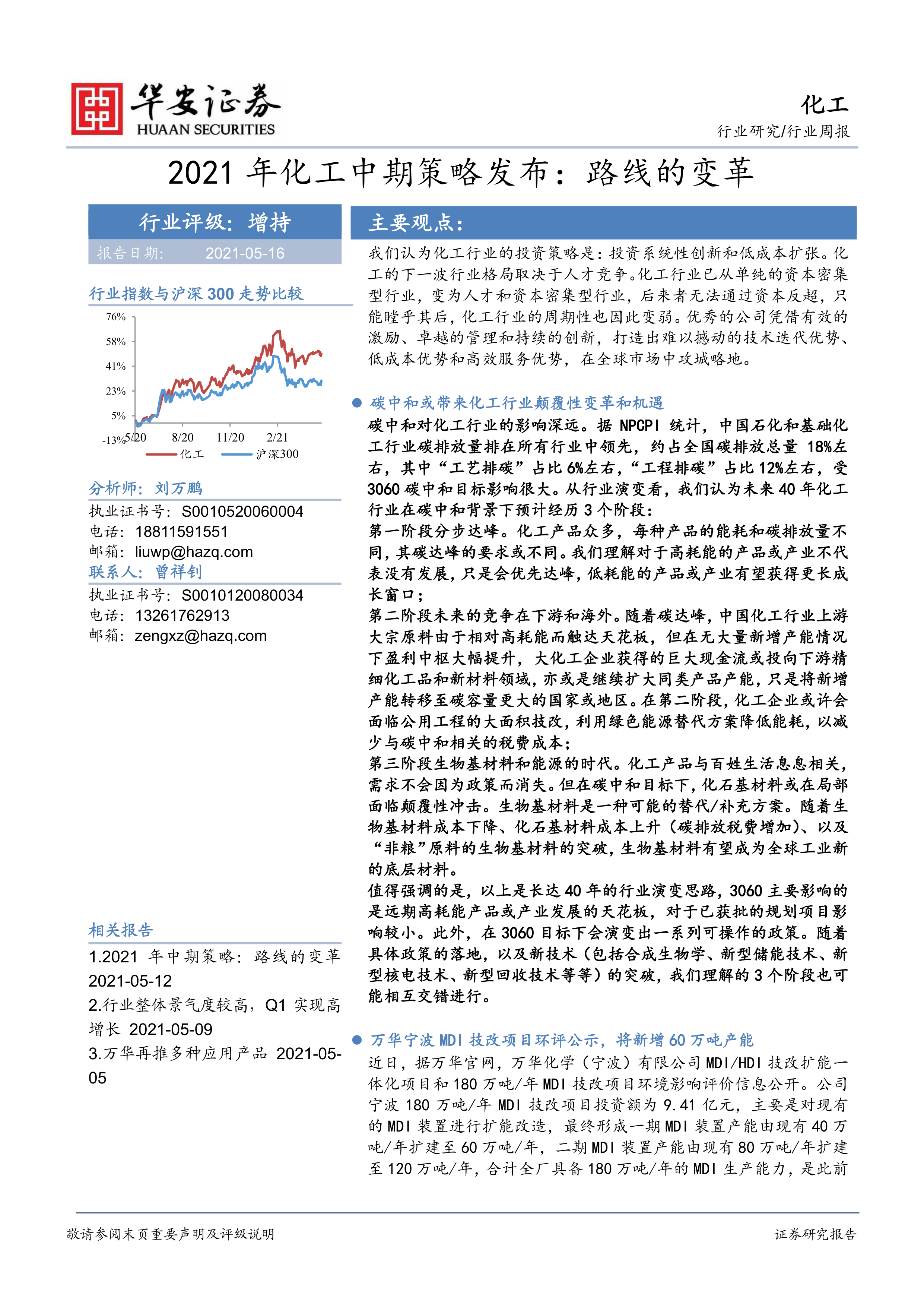 2021年化工中期策略发布:路线的变革