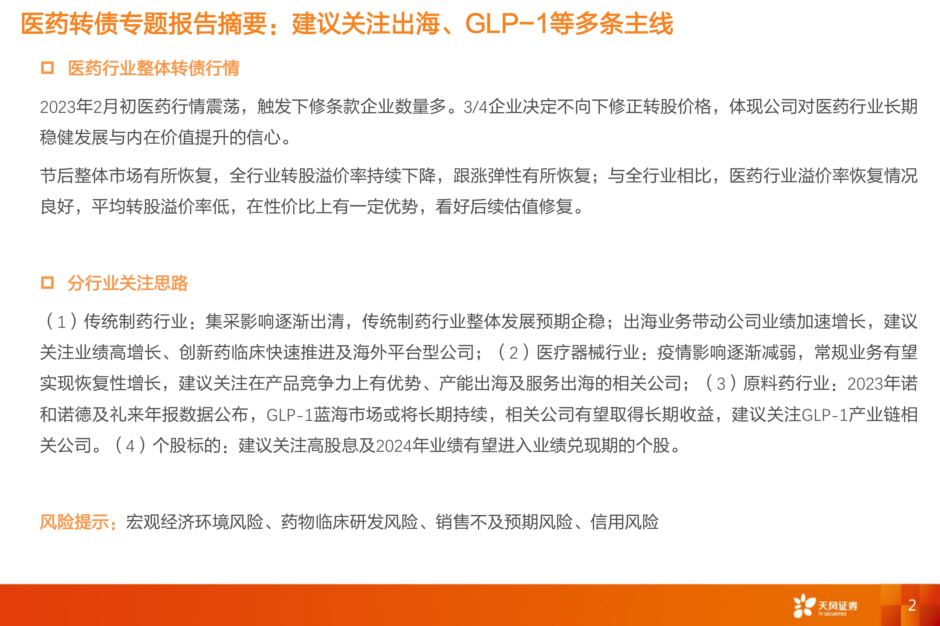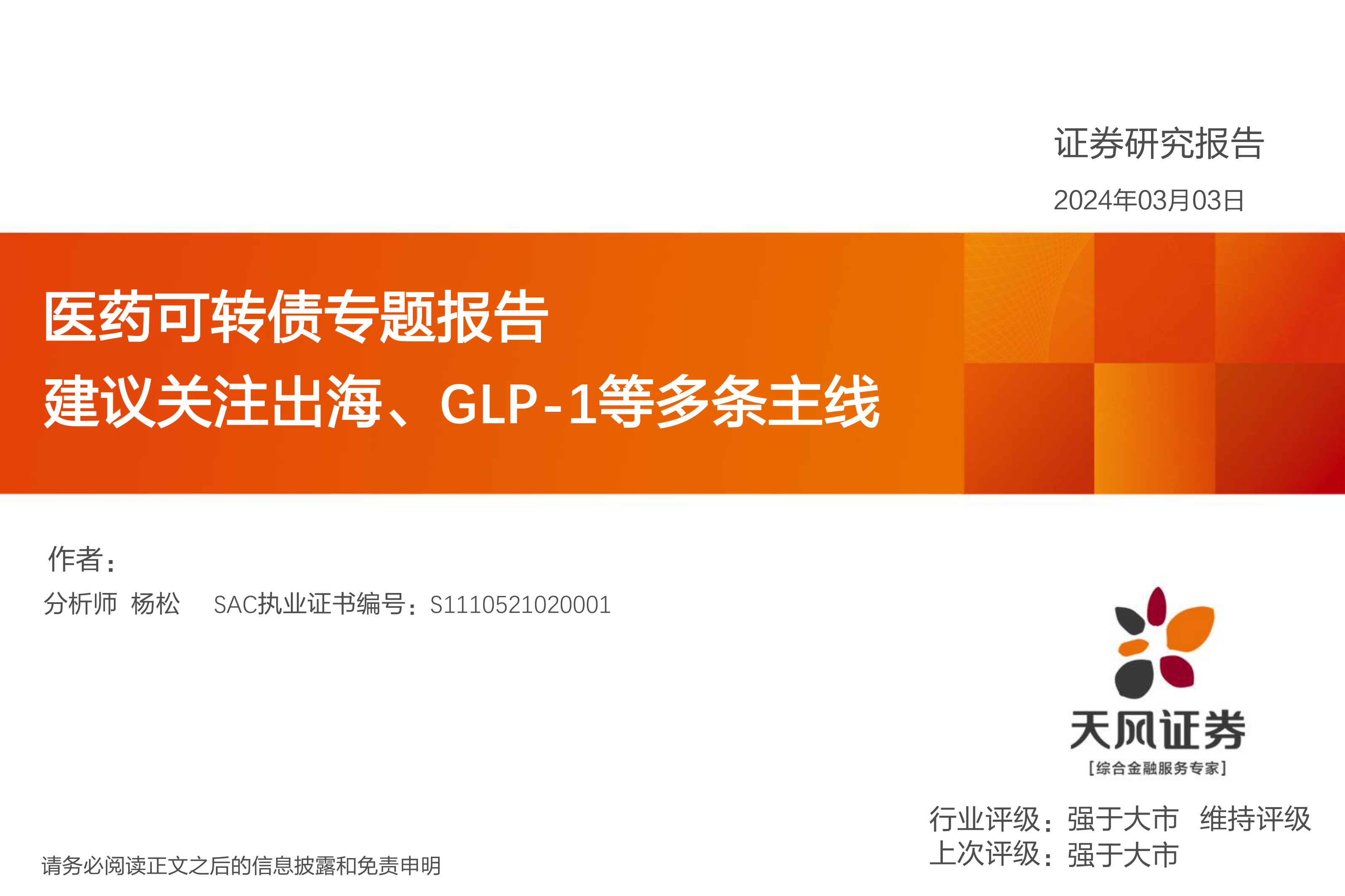 医药可转债专题报告:建议关注出海、GLP-1等多条主线
