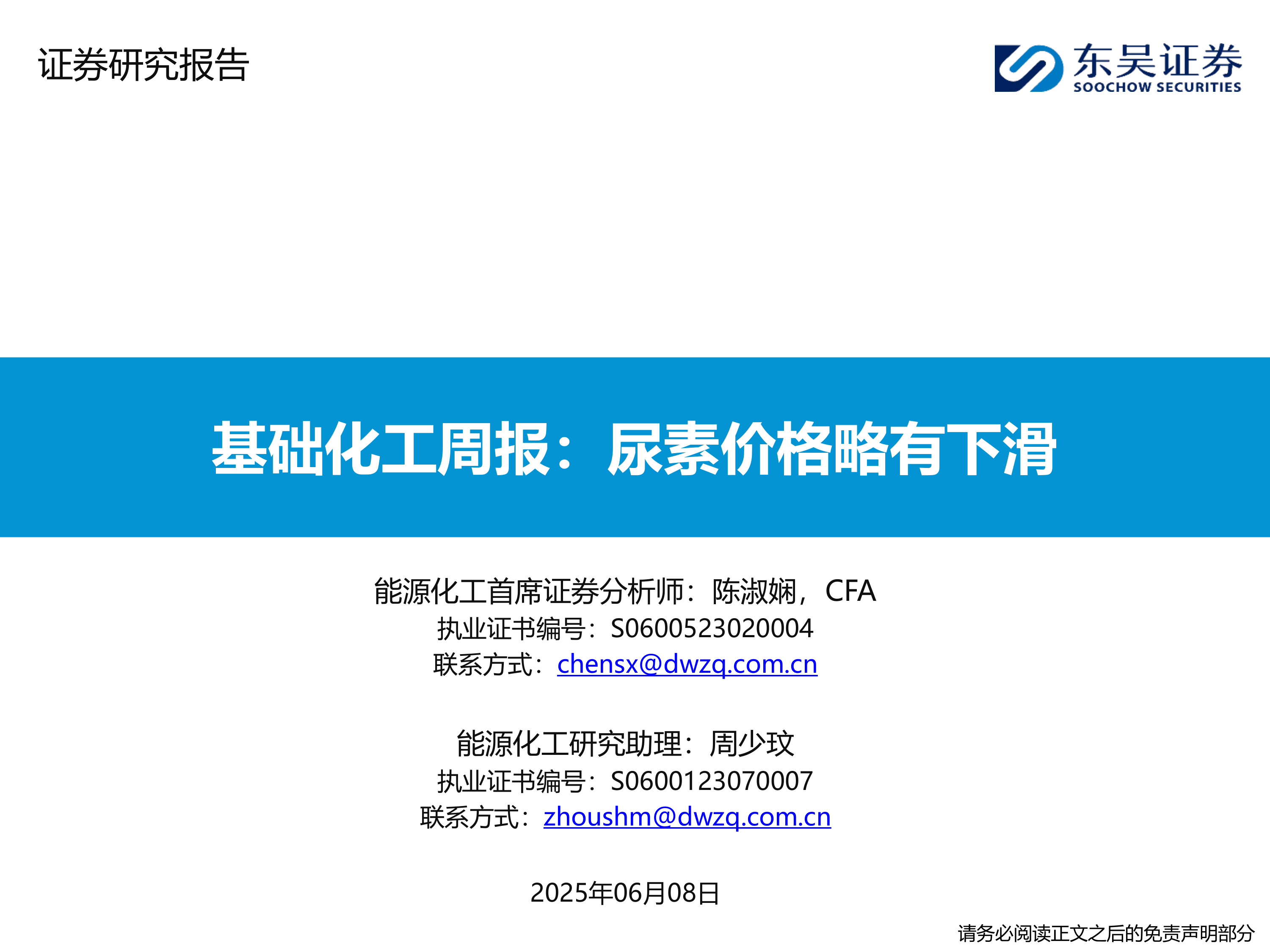 基础化工周报:尿素价格略有下滑