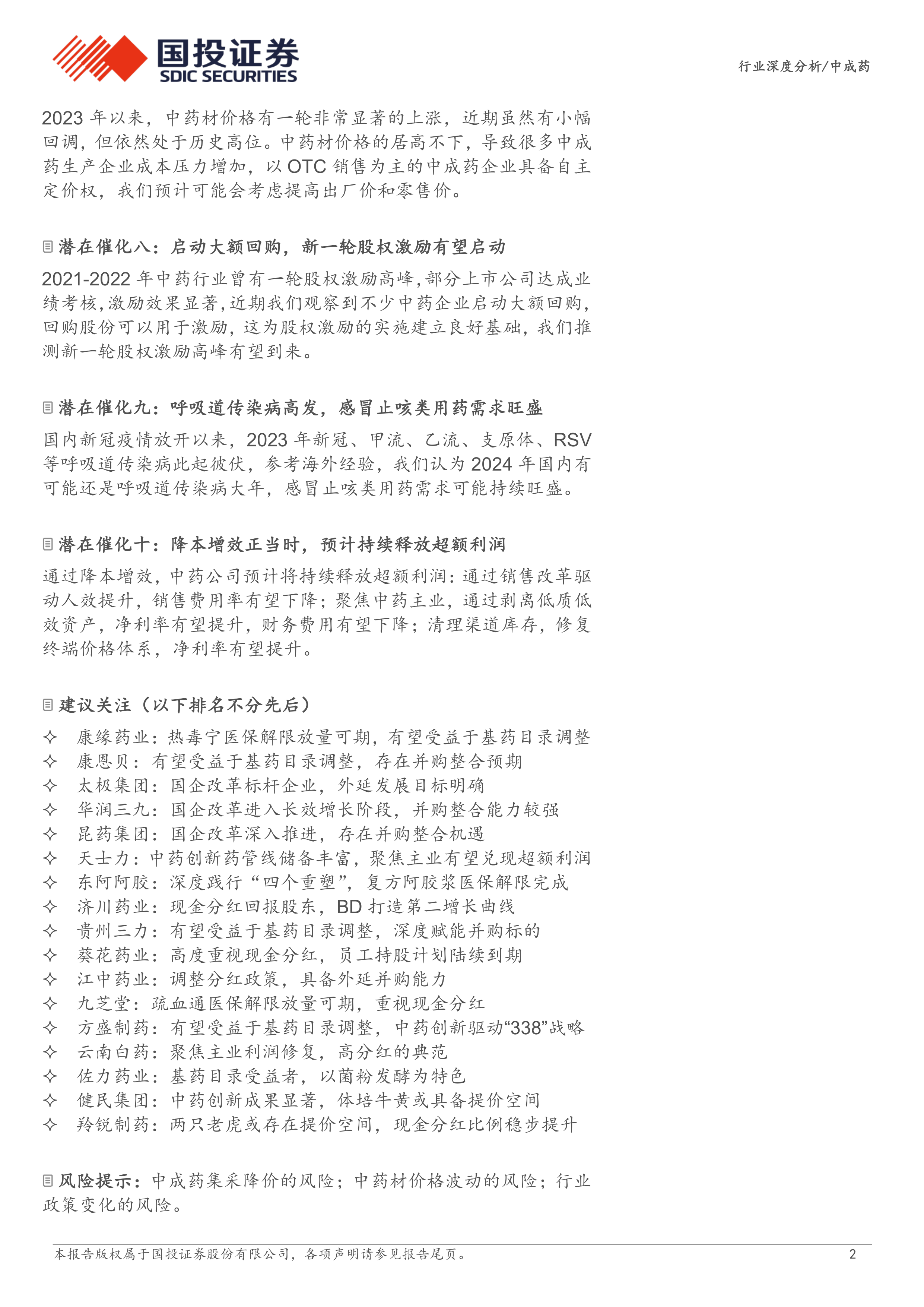 风险提示:中成药集采降价的风险;中药材价格波动的风险;行业政策变化的风险。