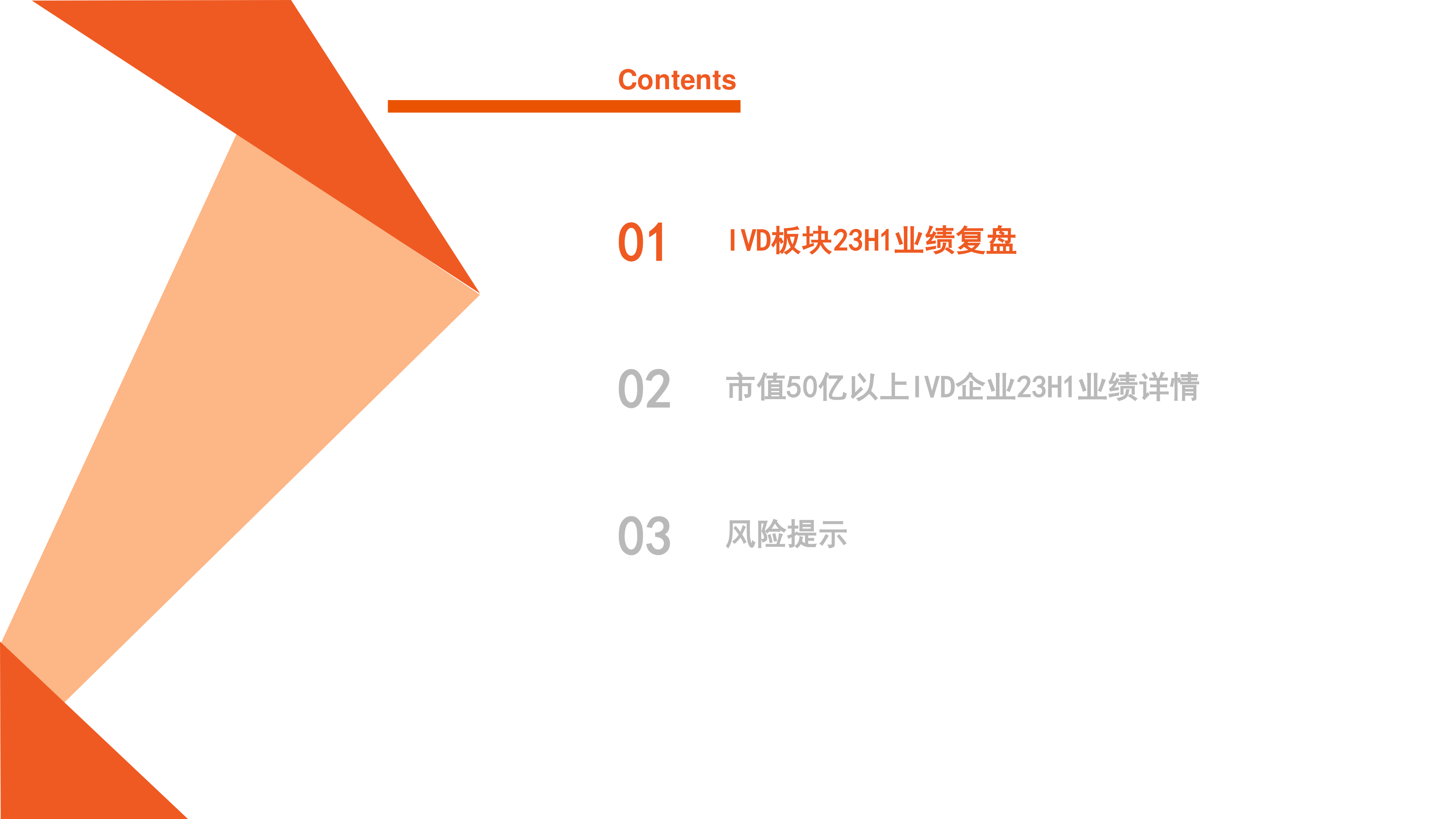 本节对市值超过50亿元的IVD企业2023年上半年的营收情况进行了详细的统计和分析,提供了具体的营收数据图表,以便更深入地了解头部企业的业绩表现。 报告中分别列出了2023年上半年和2023年第二季度的营收数据,方便投资者进行横向和纵向的比较分析。 (由于原文未提供具体数据,此处仅描述章节内容。)
