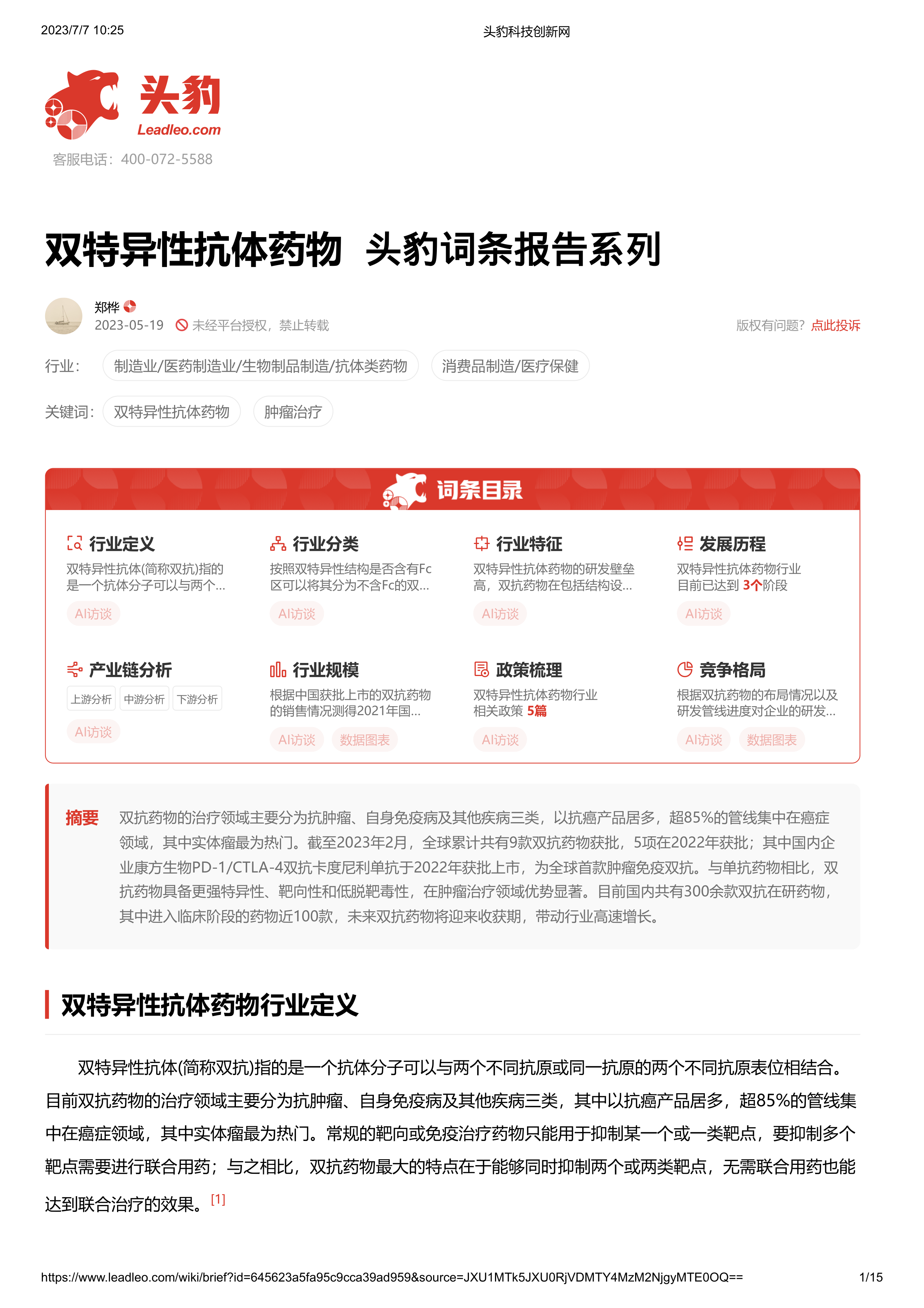 双特异性抗体药物 头豹词条报告系列