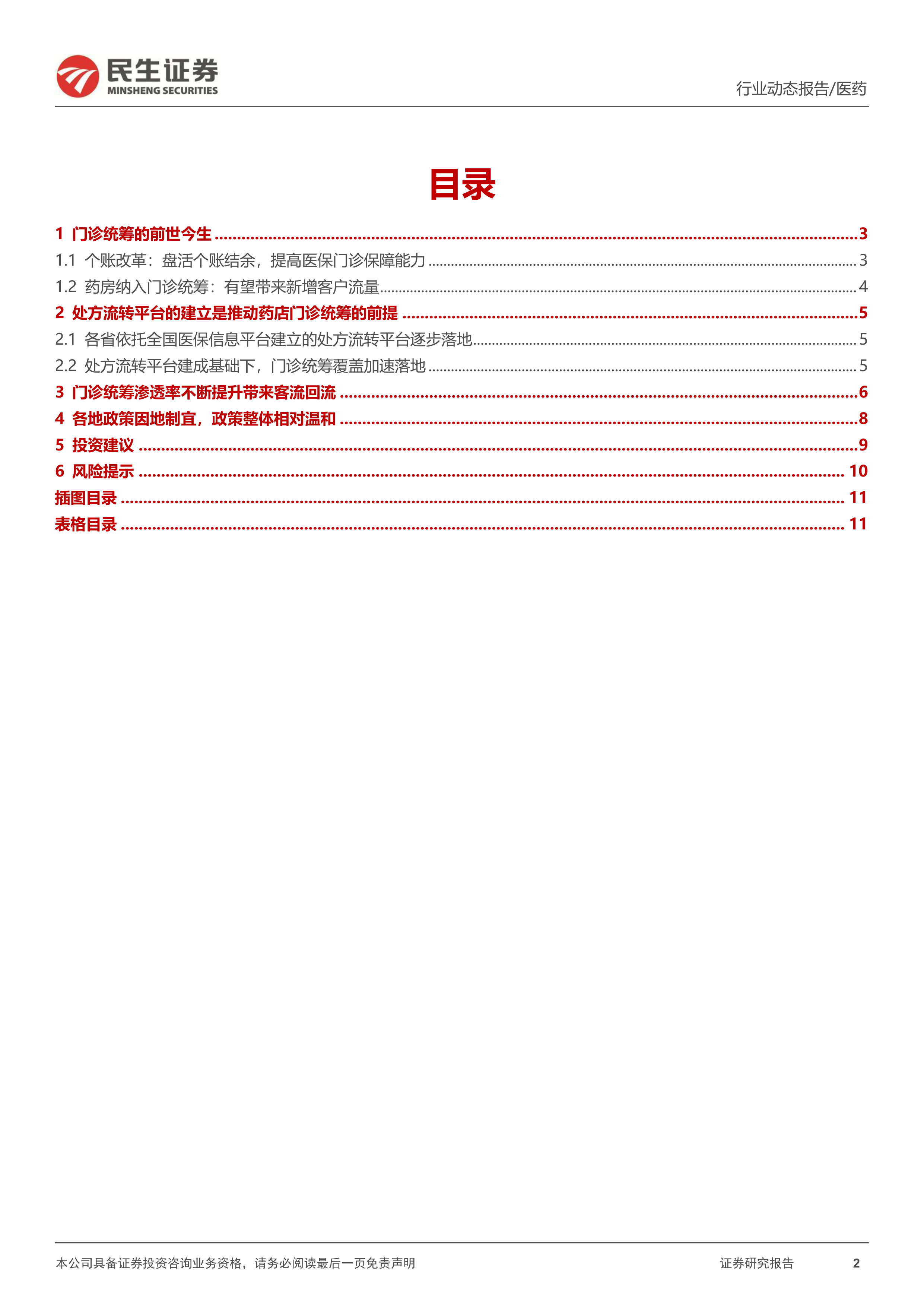 风险提示:1)行业竞争加剧的风险;2)统筹门诊对接效率慢于预期风险;3)下游需求不及预期;4)门店并购进度不及预期风险;5)医保报销政策趋严风险。