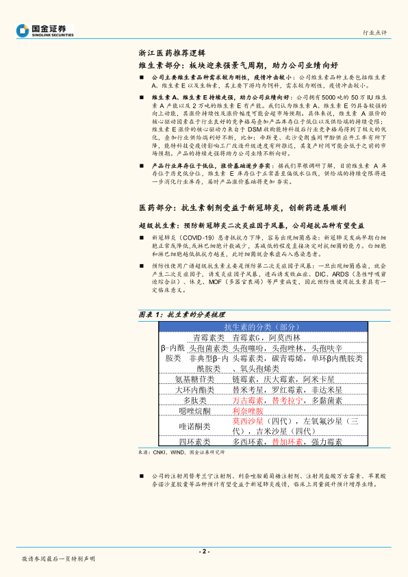 本报告的核心观点是维生素行业正经历一个强劲的景气周期,主要原因是供需关系的持续紧张以及疫情的间接影响。报告建议增持维生素板块,并重点关注浙江医药和新和成两家公司。 具体而言,报告从以下几个方面论证了这一观点: