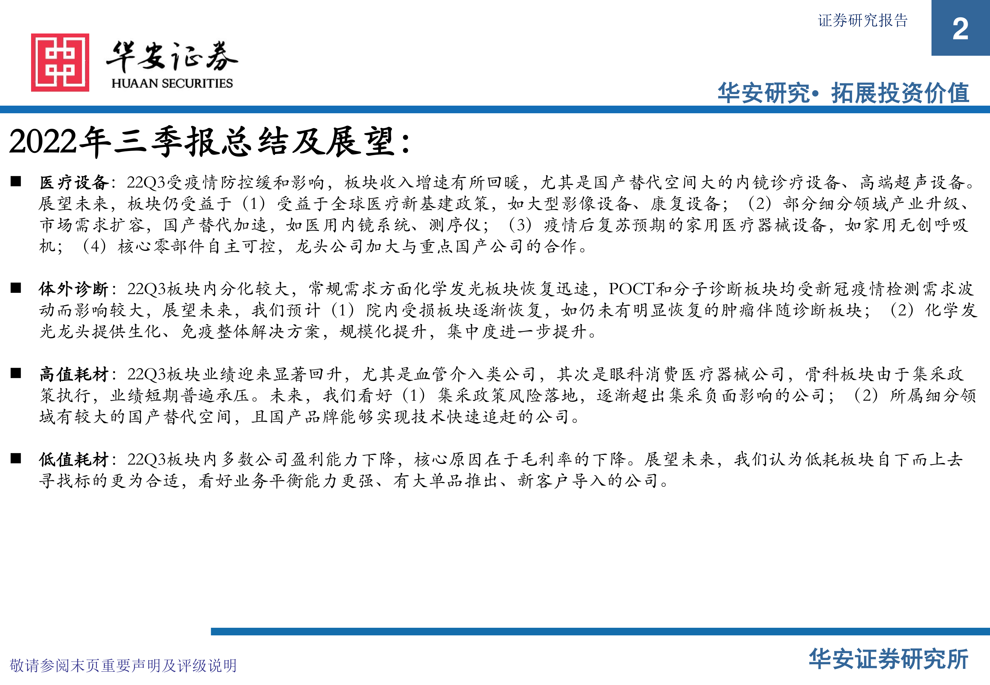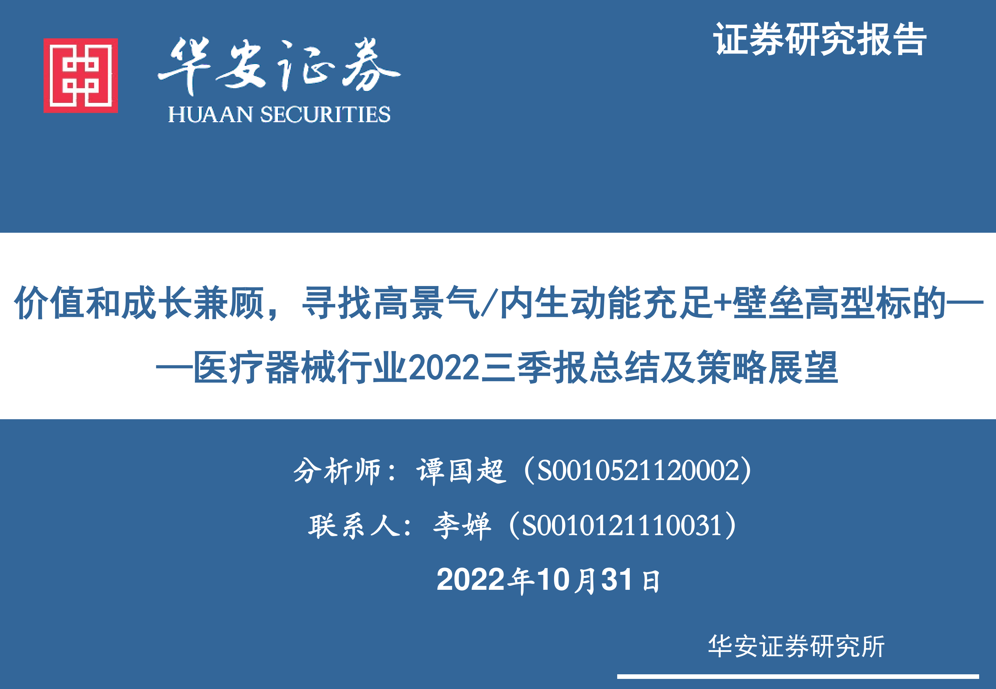医疗器械行业2022三季报总结及策略展望:价值和成长兼顾,寻找高景气/内生动能充足+壁垒高型标的