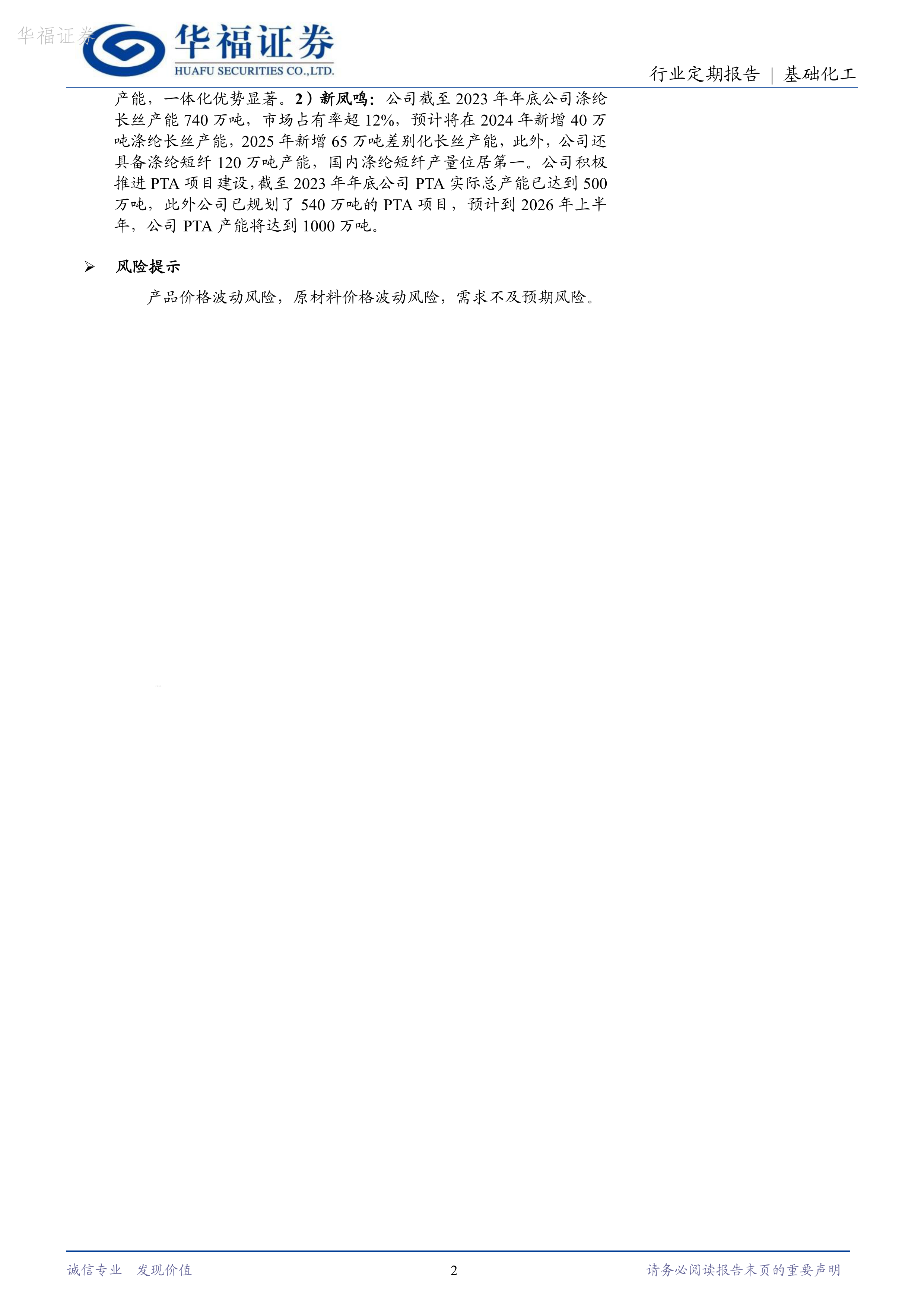 新凤鸣涤纶长丝产能规模居于行业前列,未来产能持续扩张,并积极推进PTA项目建设,完善上游产业链。