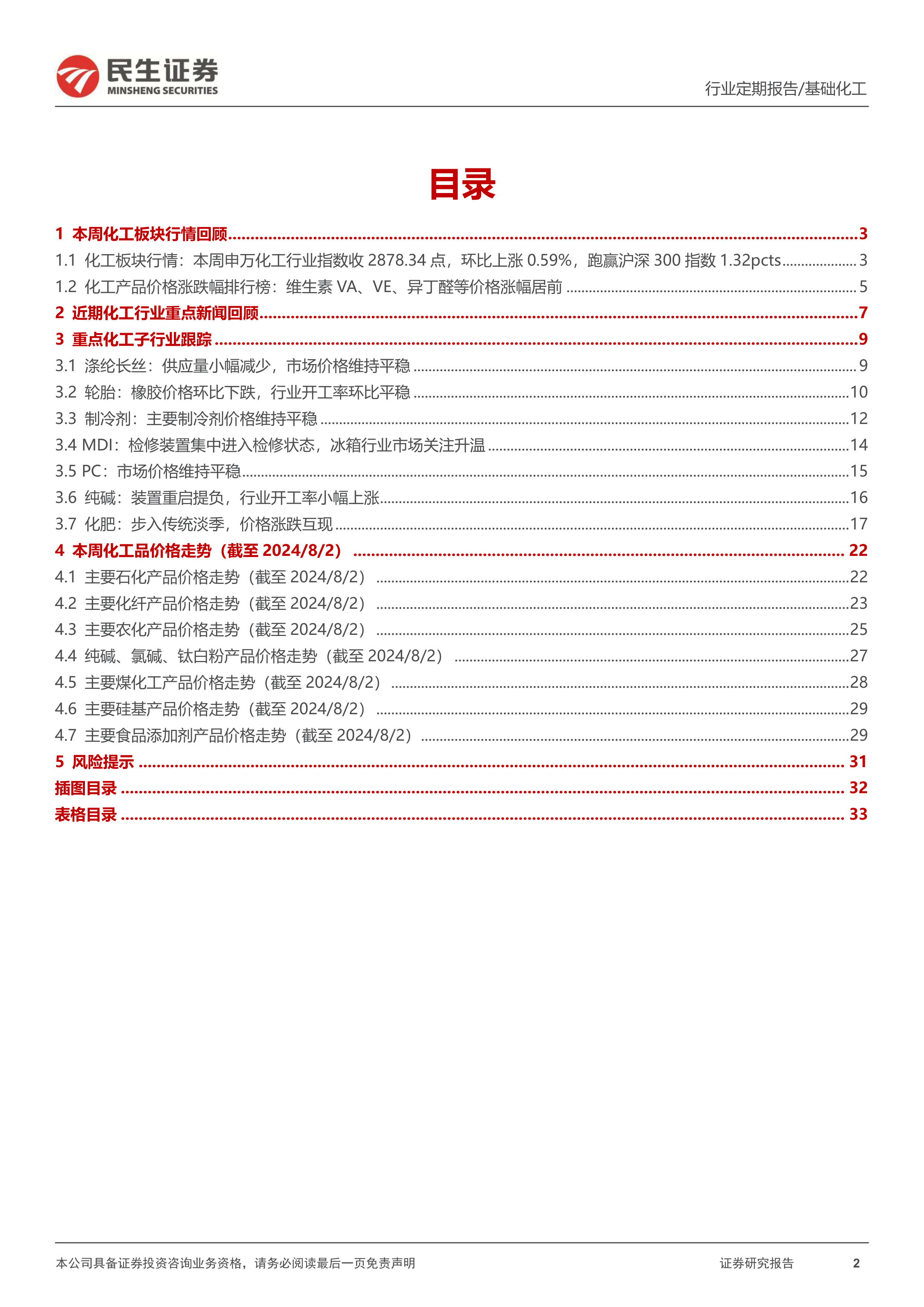 风险提示:下游需求不及预期、原油及天然气价格大幅波动、环保和生产安全等风险。