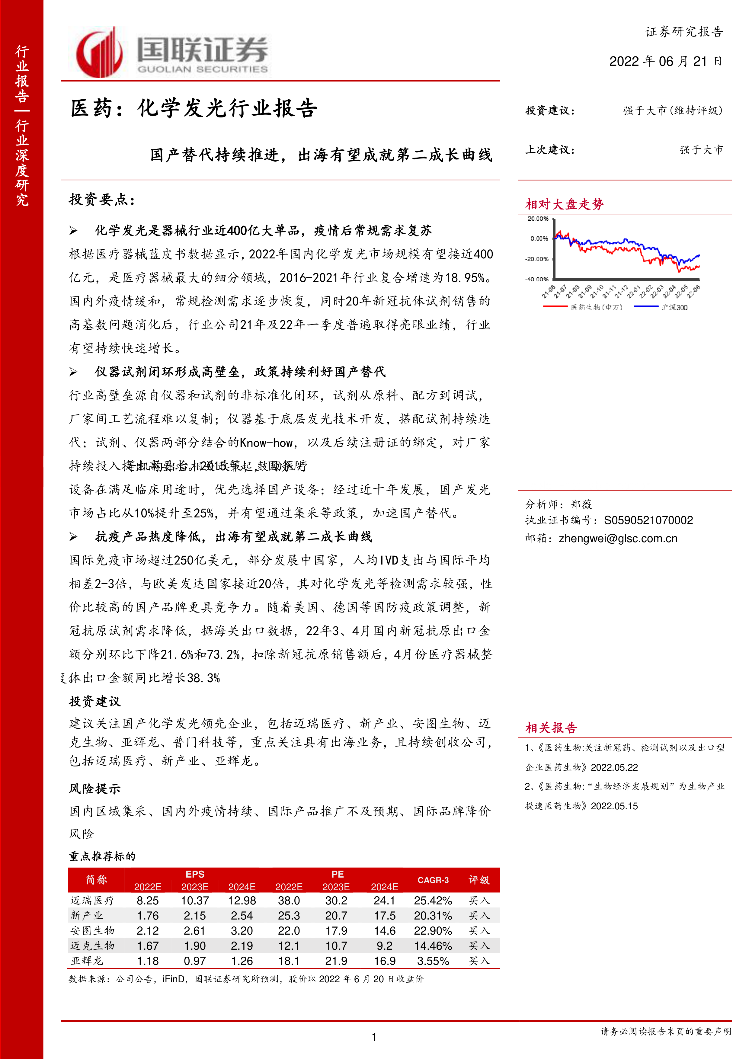 医药:化学发光行业报告:国产替代持续推进,出海有望成就第二成长曲线