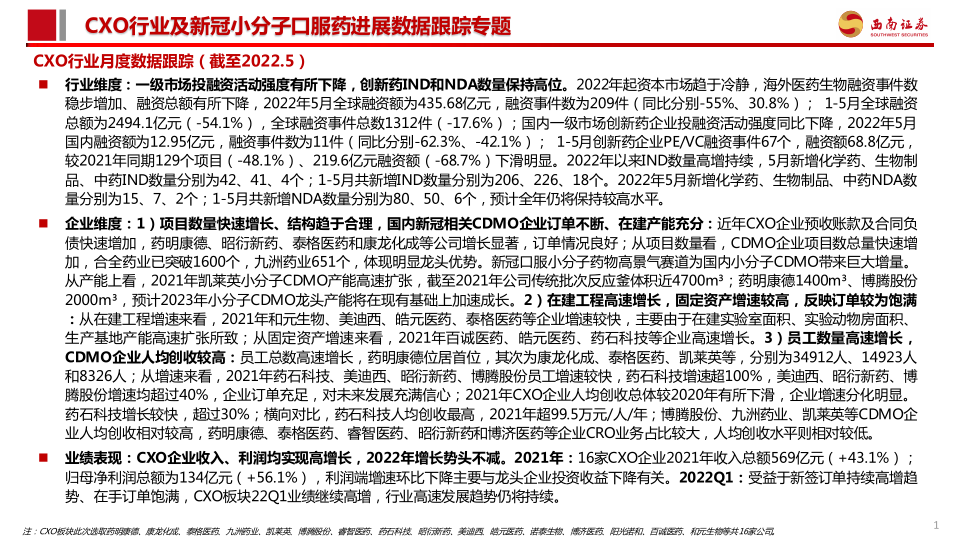 CXO行业月度数据跟踪(截至2022.6)