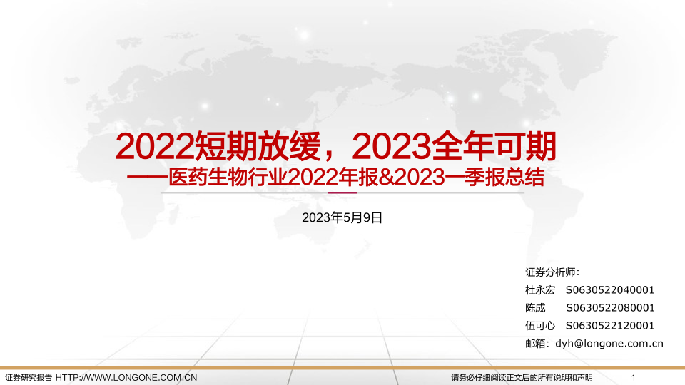 医药生物行业2022年报&2023一季报总结:2022短期放缓,2023全年可期