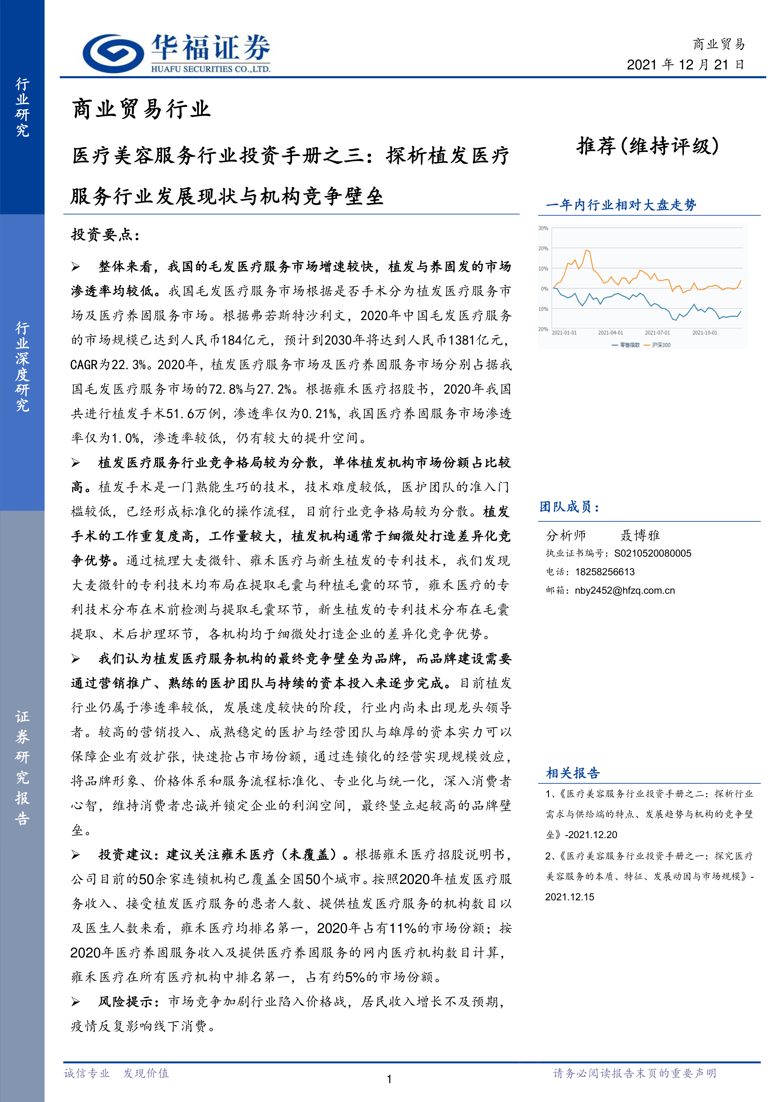 商业贸易行业:医疗美容服务行业投资手册之三:探析植发医疗服务行业发展现状与机构竞争壁垒