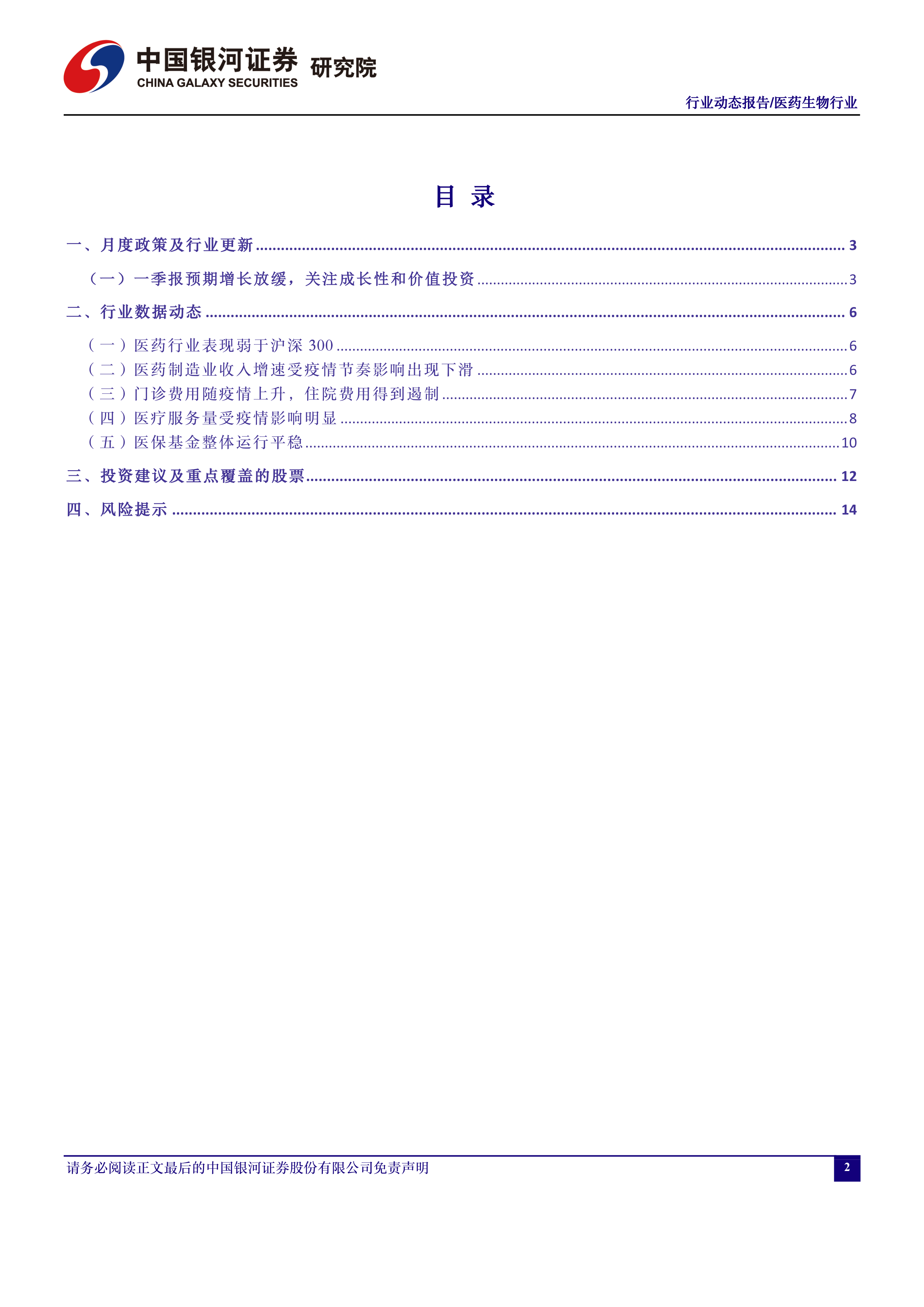 风险提示:1.医改政策推进不及预期的风险;2.医保控费及集采降价力度超预期的风险;3.医疗“新基建”政策落地不及预期的风险;4.创新药及创新器械企业融资困难的风险等。
