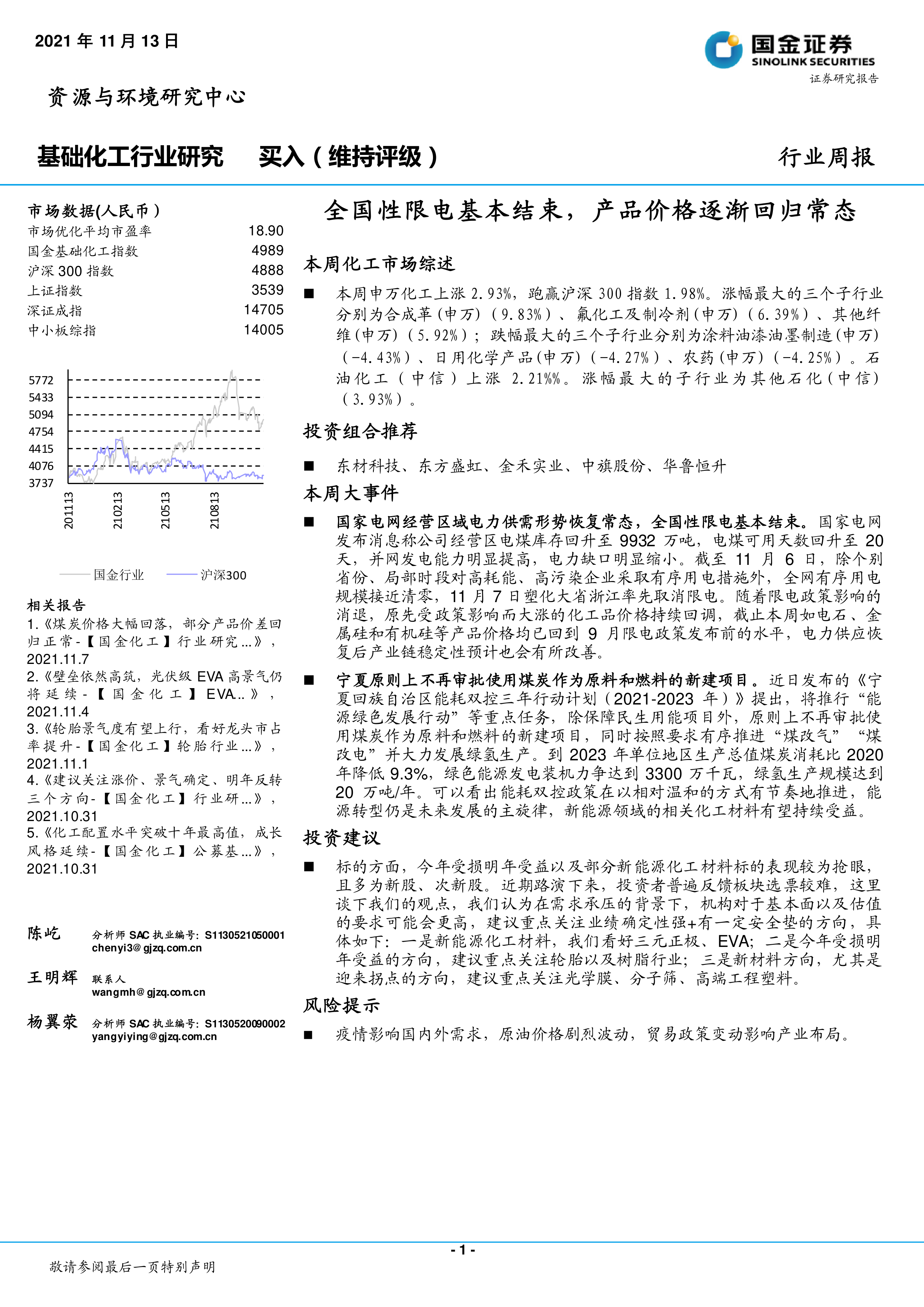 基础化工行业周报:全国性限电基本结束,产品价格逐渐回归常态