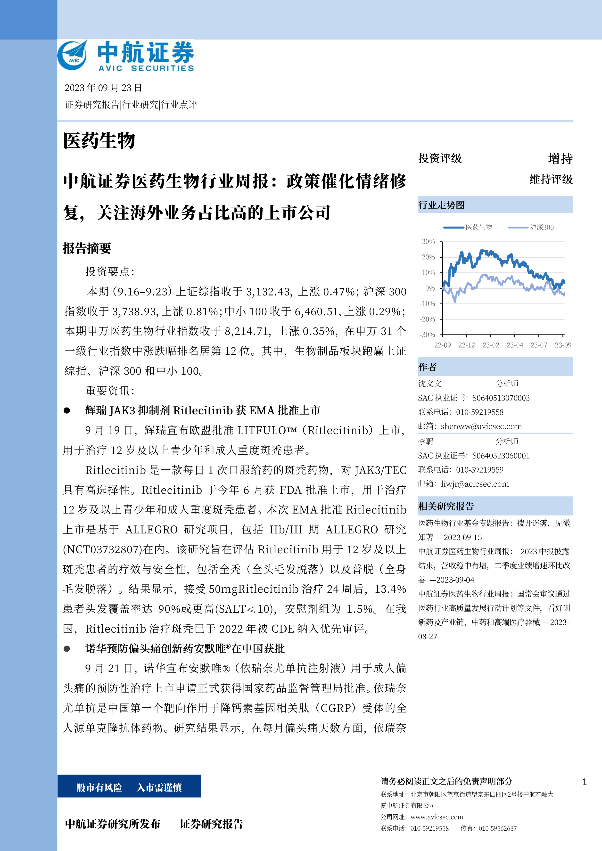 医药生物行业周报:政策催化情绪修复,关注海外业务占比高的上市公司