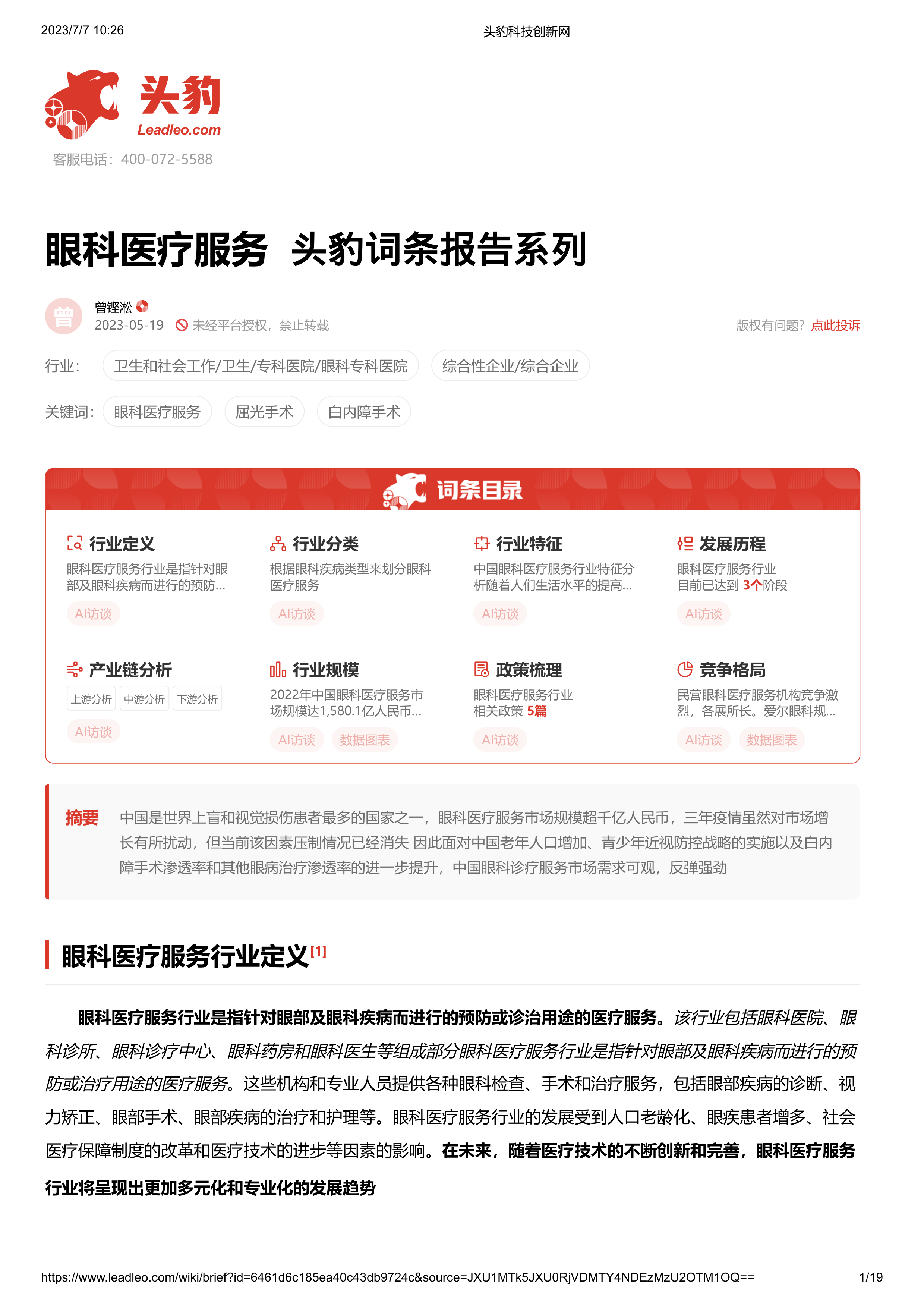 眼科医疗服务 头豹词条报告系列