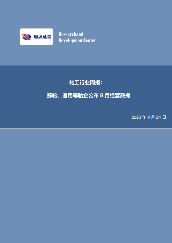化工行业周报:赛轮、通用等胎企公布8月经营数据