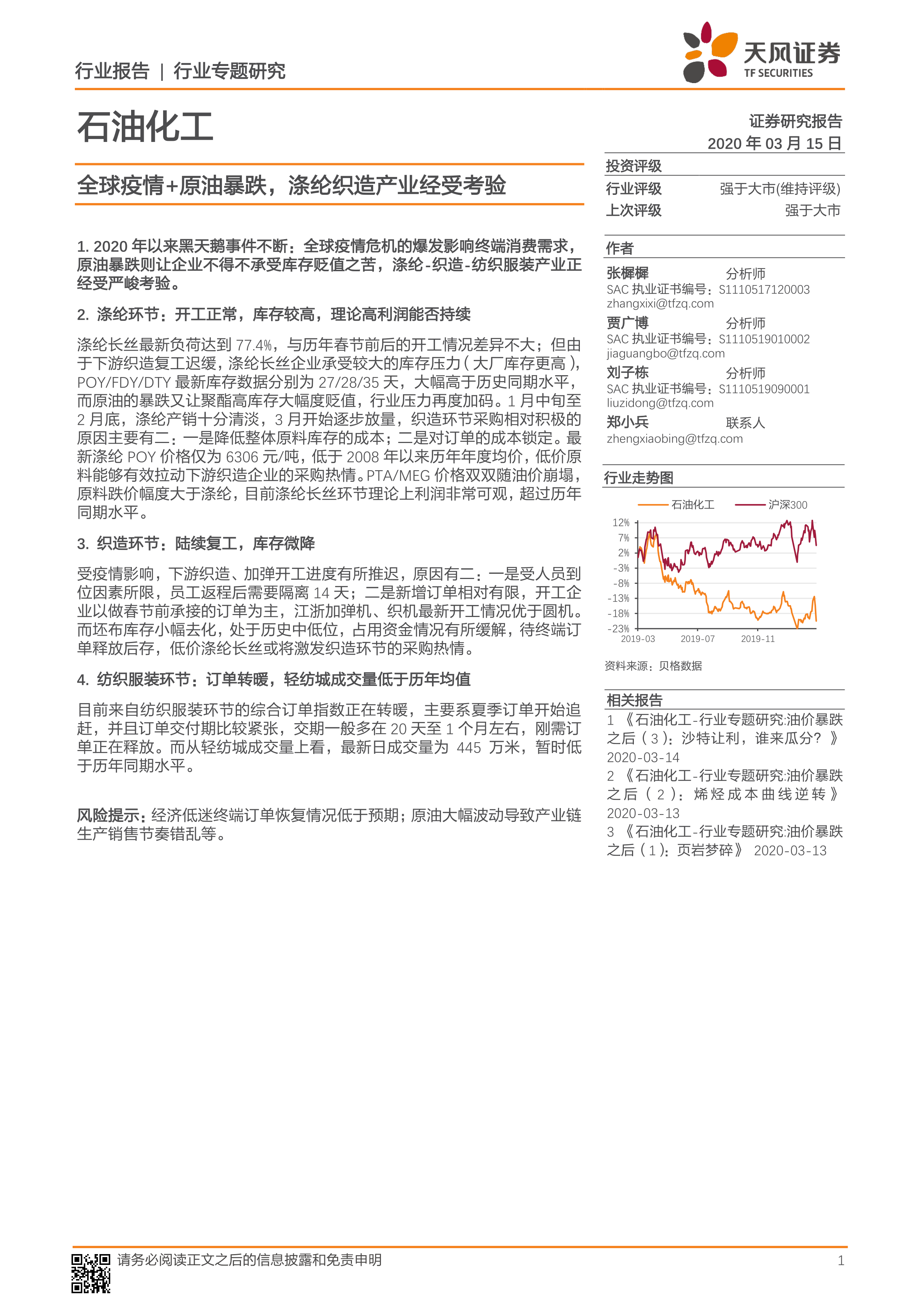 石油化工行业专题研究:全球疫情+原油暴跌,涤纶织造产业经受考验