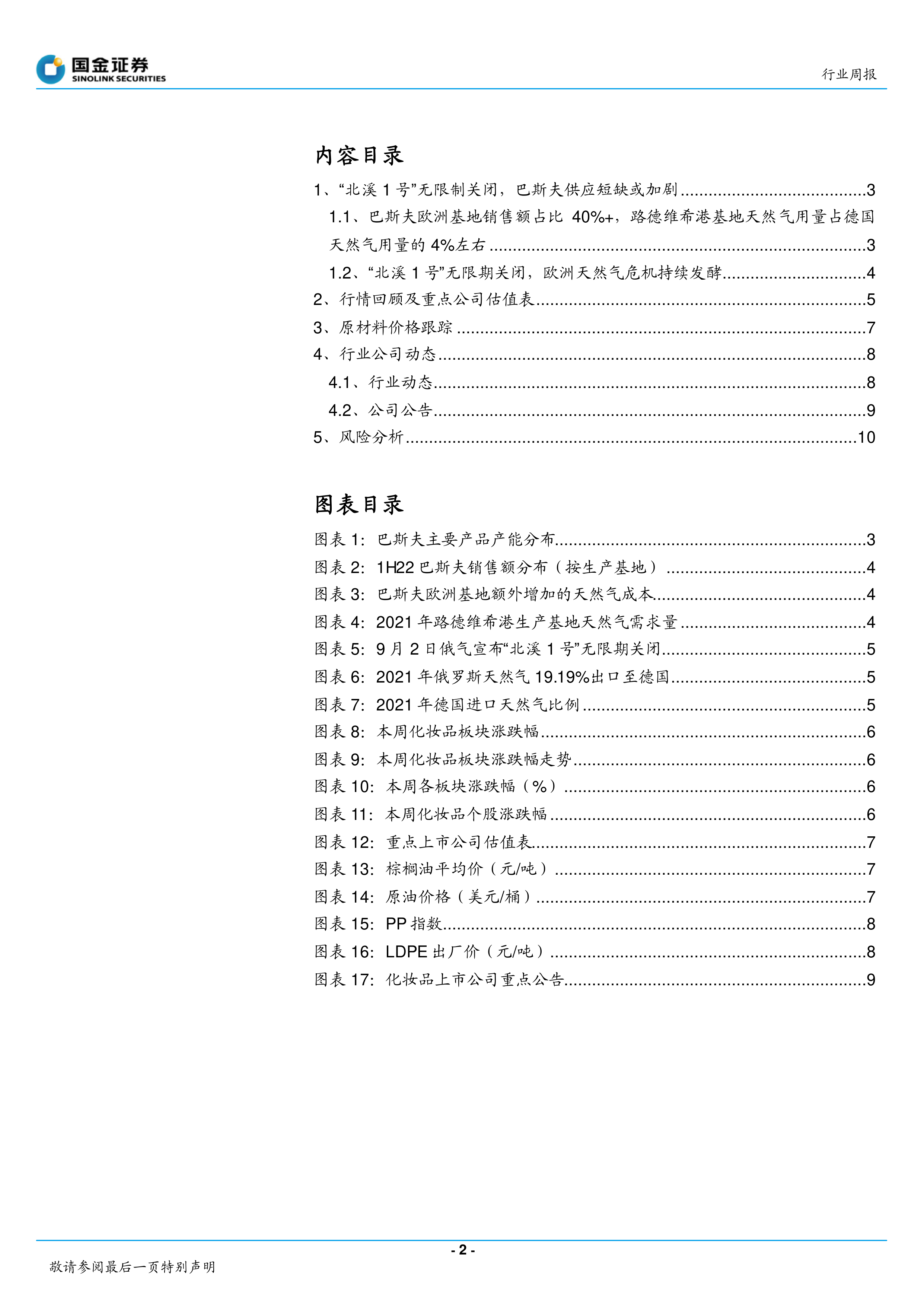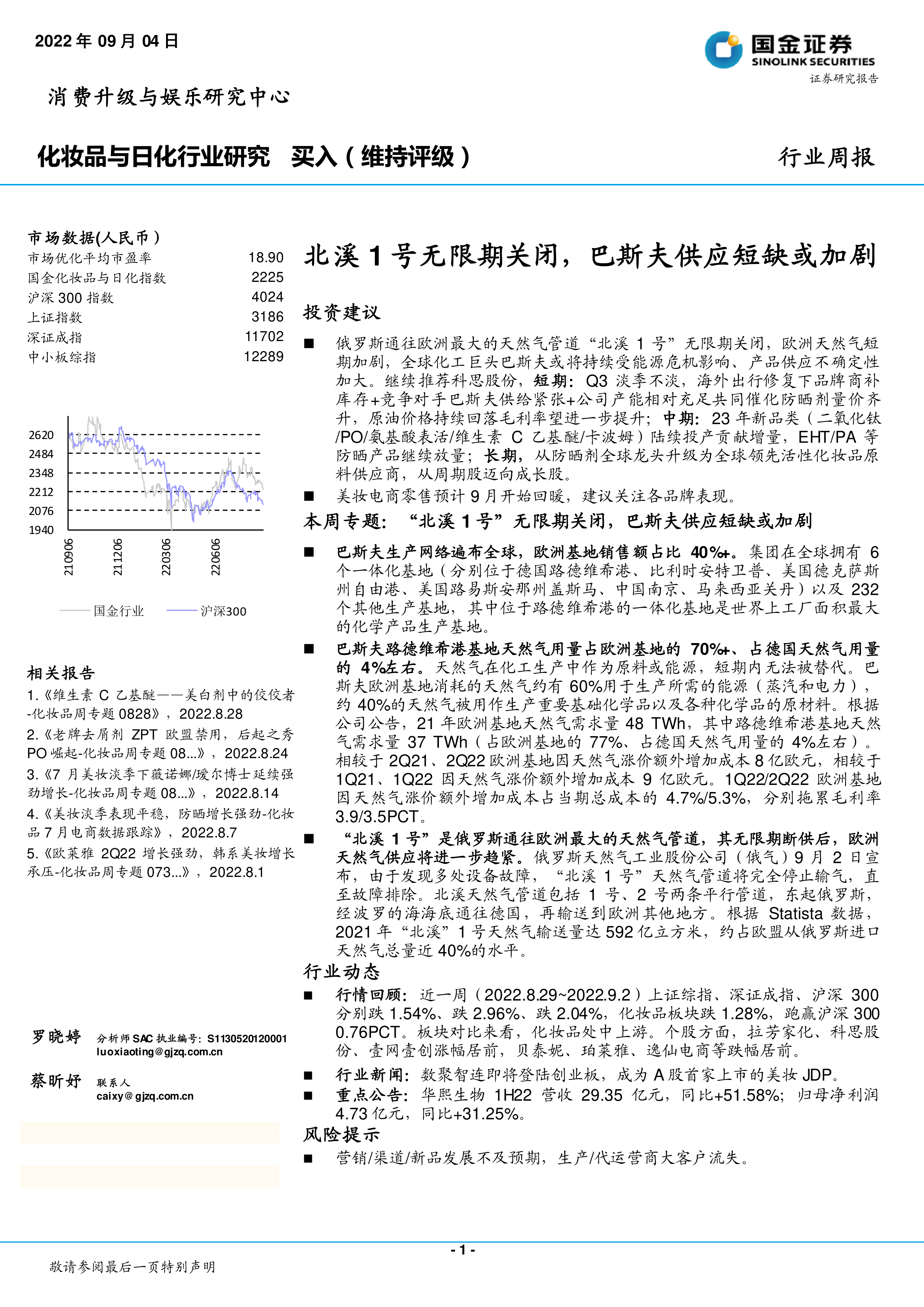 化妆品与日化行业研究:北溪1号无限期关闭,巴斯夫供应短缺或加剧