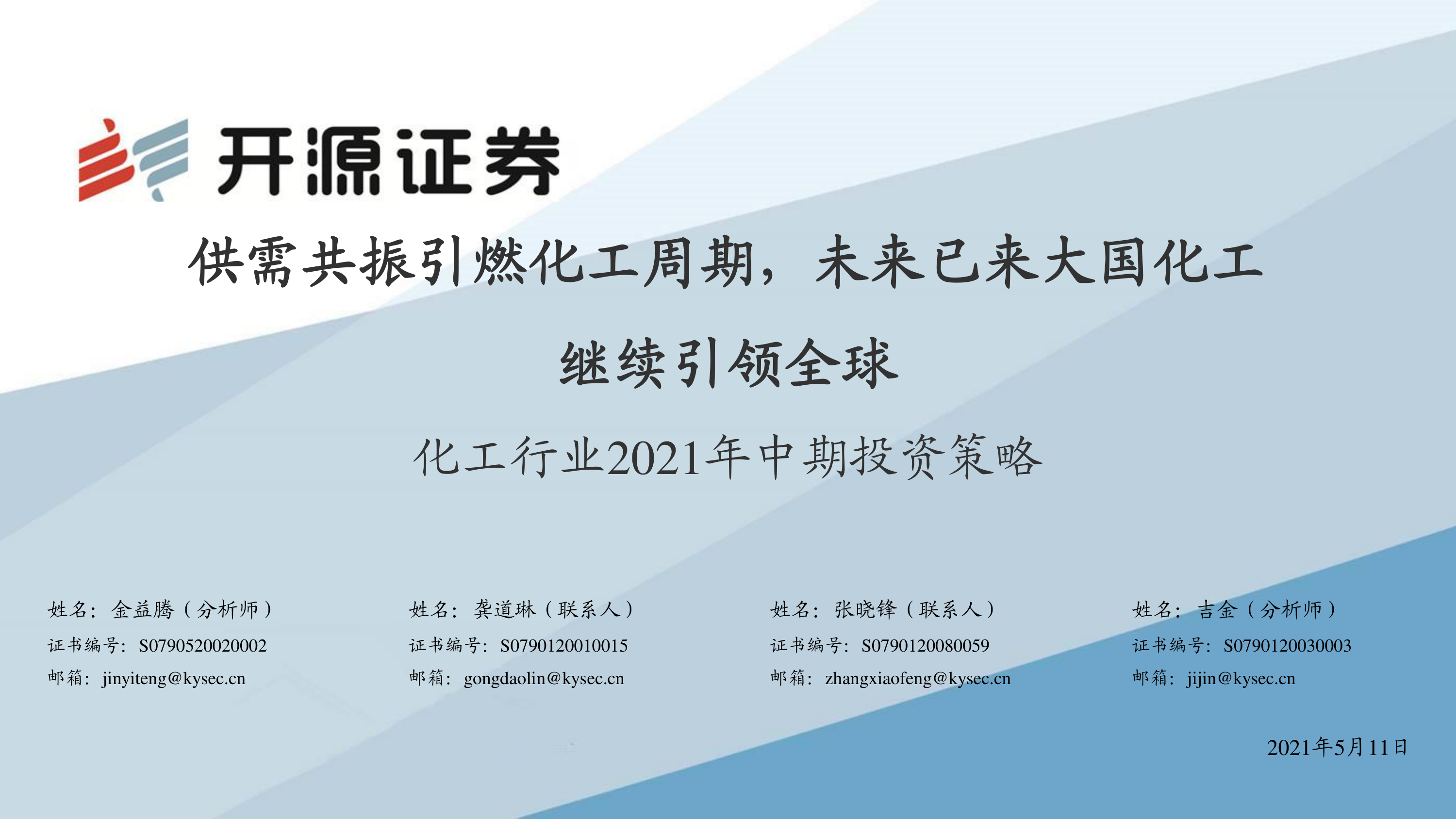化工行业2021年中期投资策略:供需共振引燃化工周期,未来已来大国化工继续引领全球