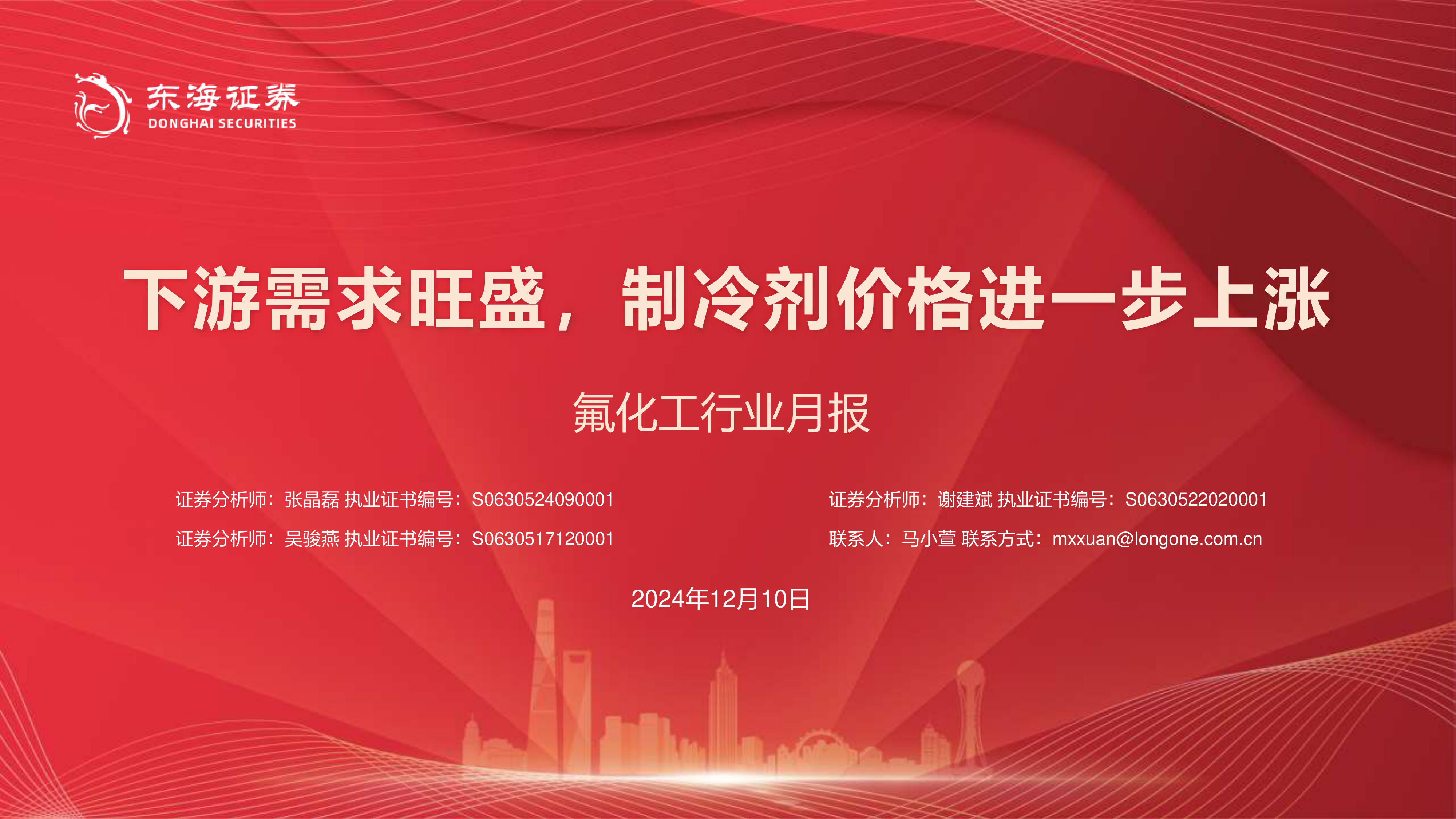 风险提示:氟化工行业相关政策变化的风险;原材料价格变化的风险;需求不及预期的风险。