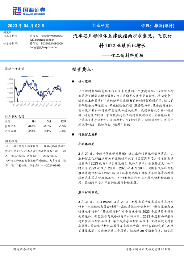 化工新材料周报:汽车芯片标准体系建设指南征求意见,飞凯材料2022业绩同比增长