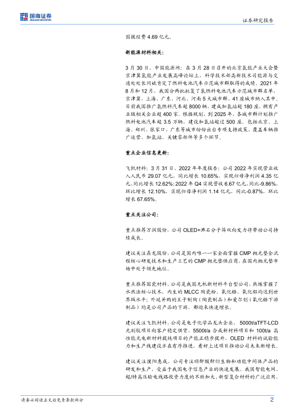 报告基于以上分析,推荐投资处于核心供应链、研发能力强、管理优异的化工新材料优质标的。报告中重点推荐和建议关注的企业如下: