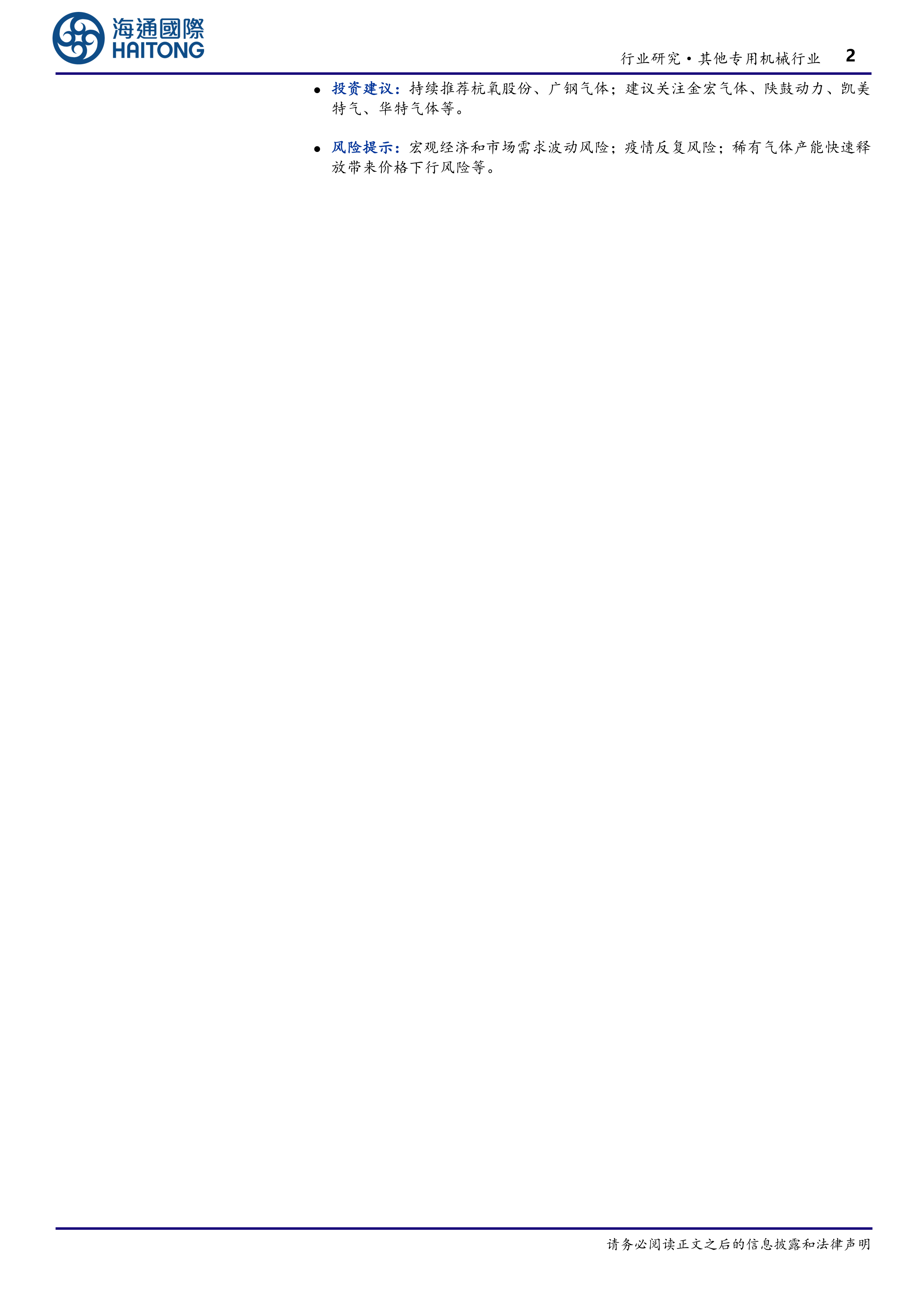 风险提示:宏观经济和市场需求波动风险;疫情反复风险;稀有气体产能快速释放带来价格下行风险等。