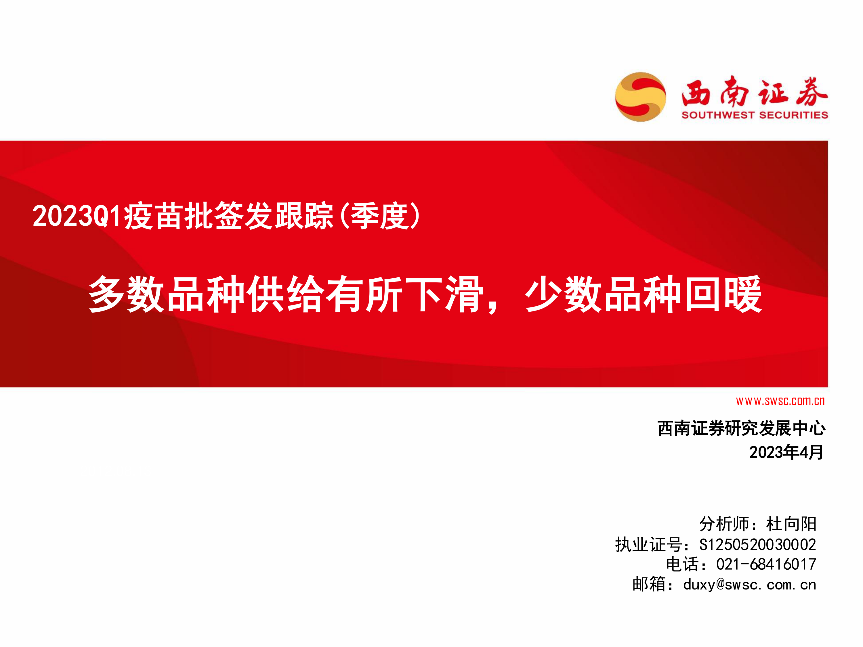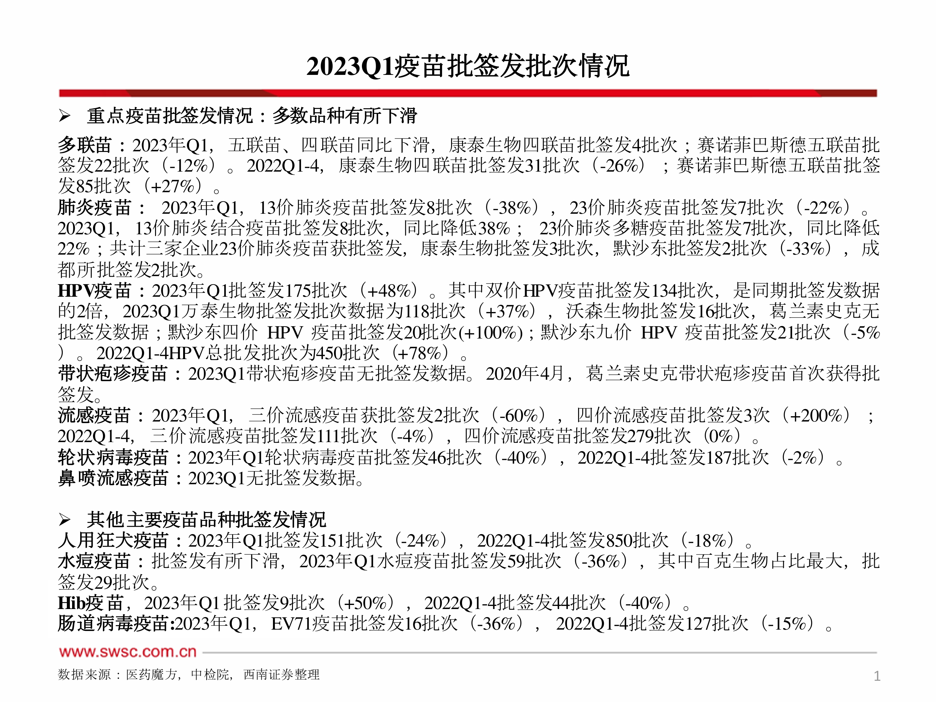 2023Q1疫苗批签发跟踪(季度):多数品种供给有所下滑,少数品种回暖