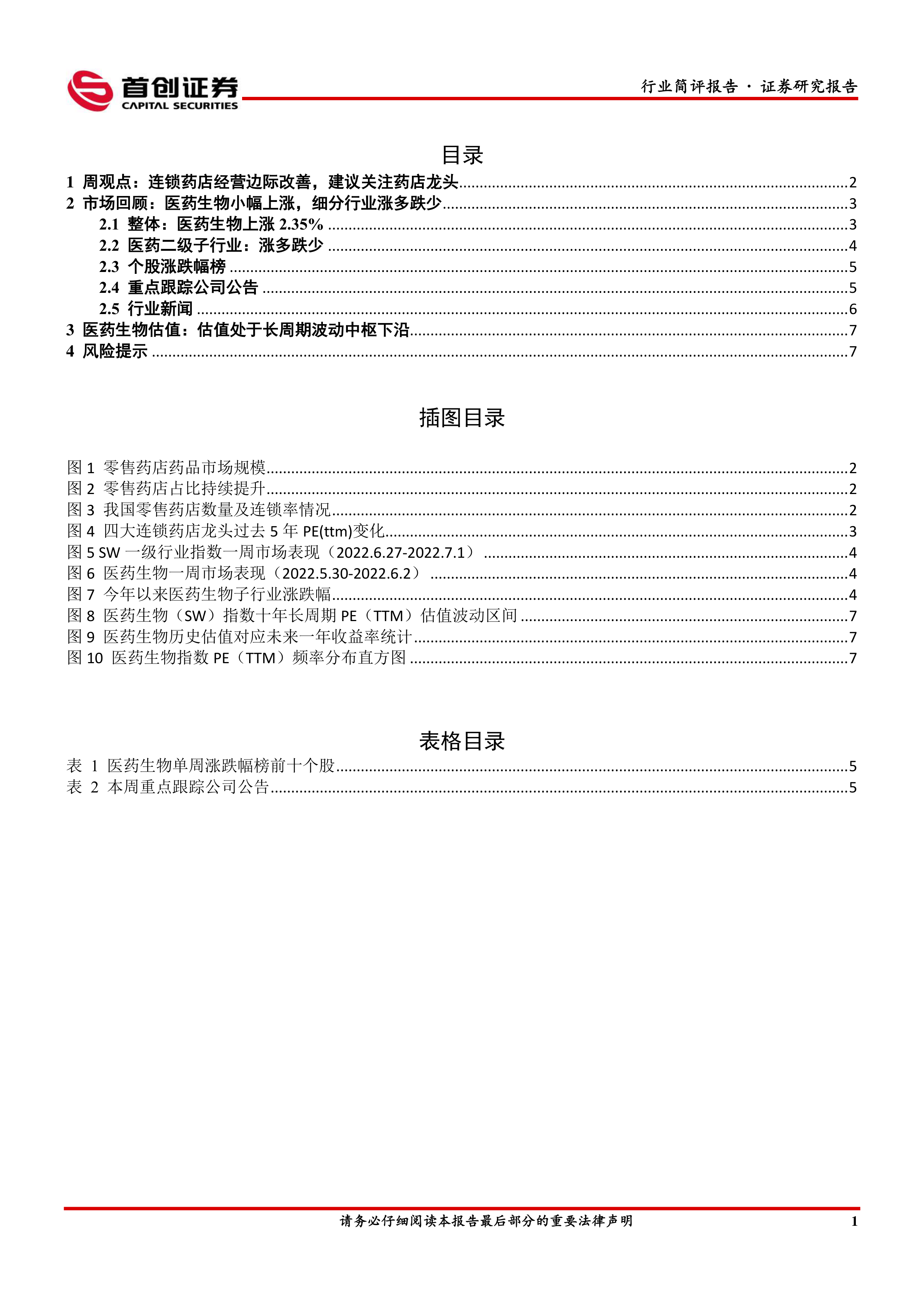 【首创医药行业周报】连锁药店经营边际改善,建议关注药店龙头