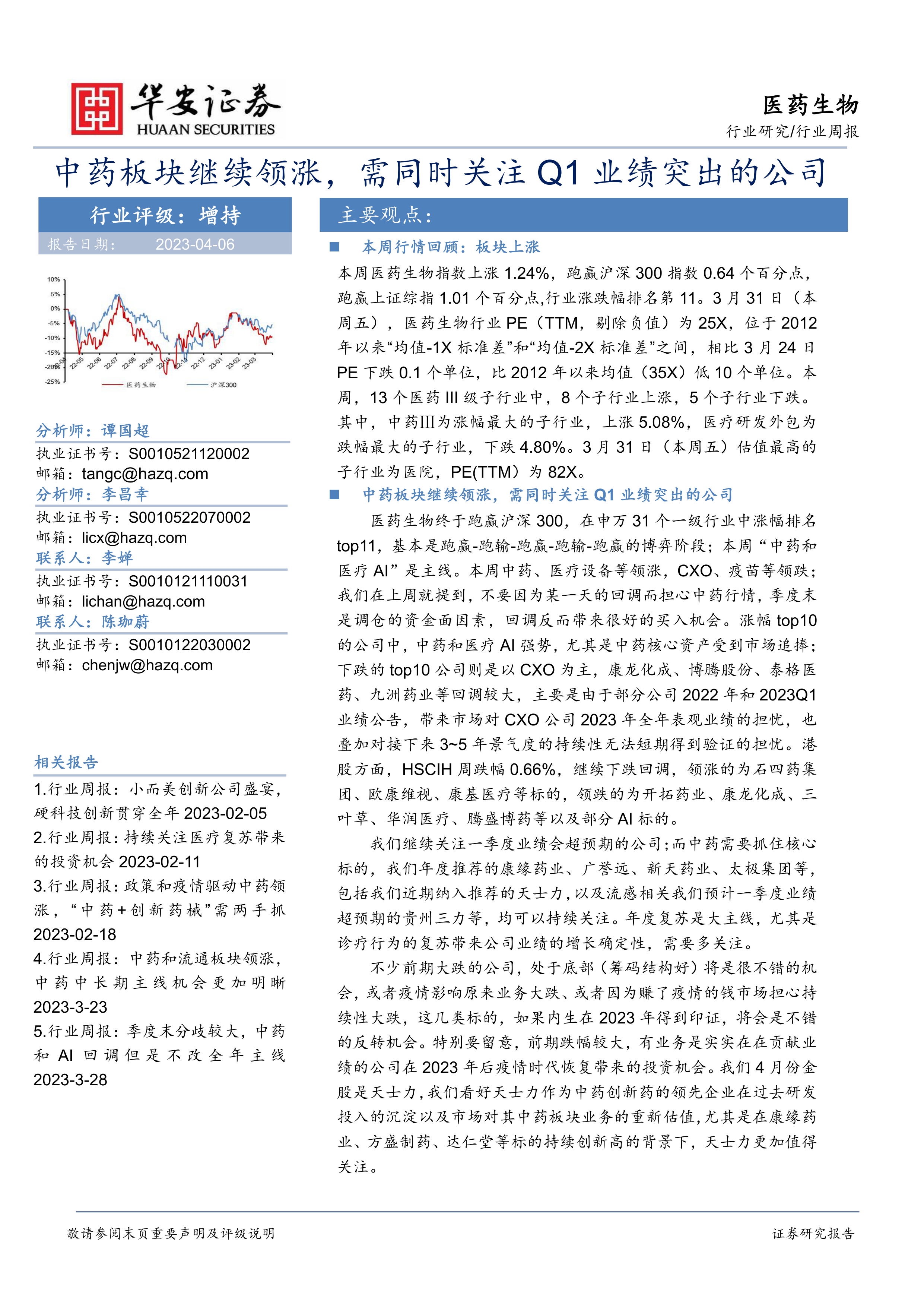 医药生物行业周报:中药板块继续领涨,需同时关注Q1业绩突出的公司