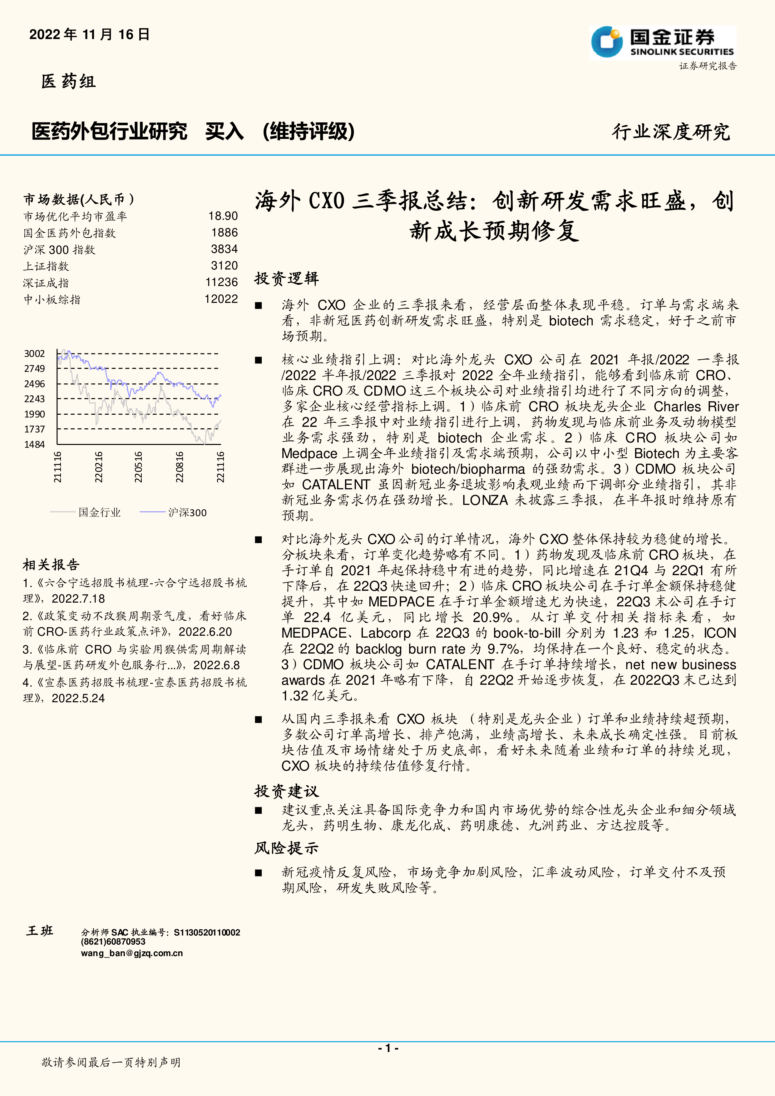 医药外包:海外CXO三季报总结:创新研发需求旺盛,创新成长预期修复