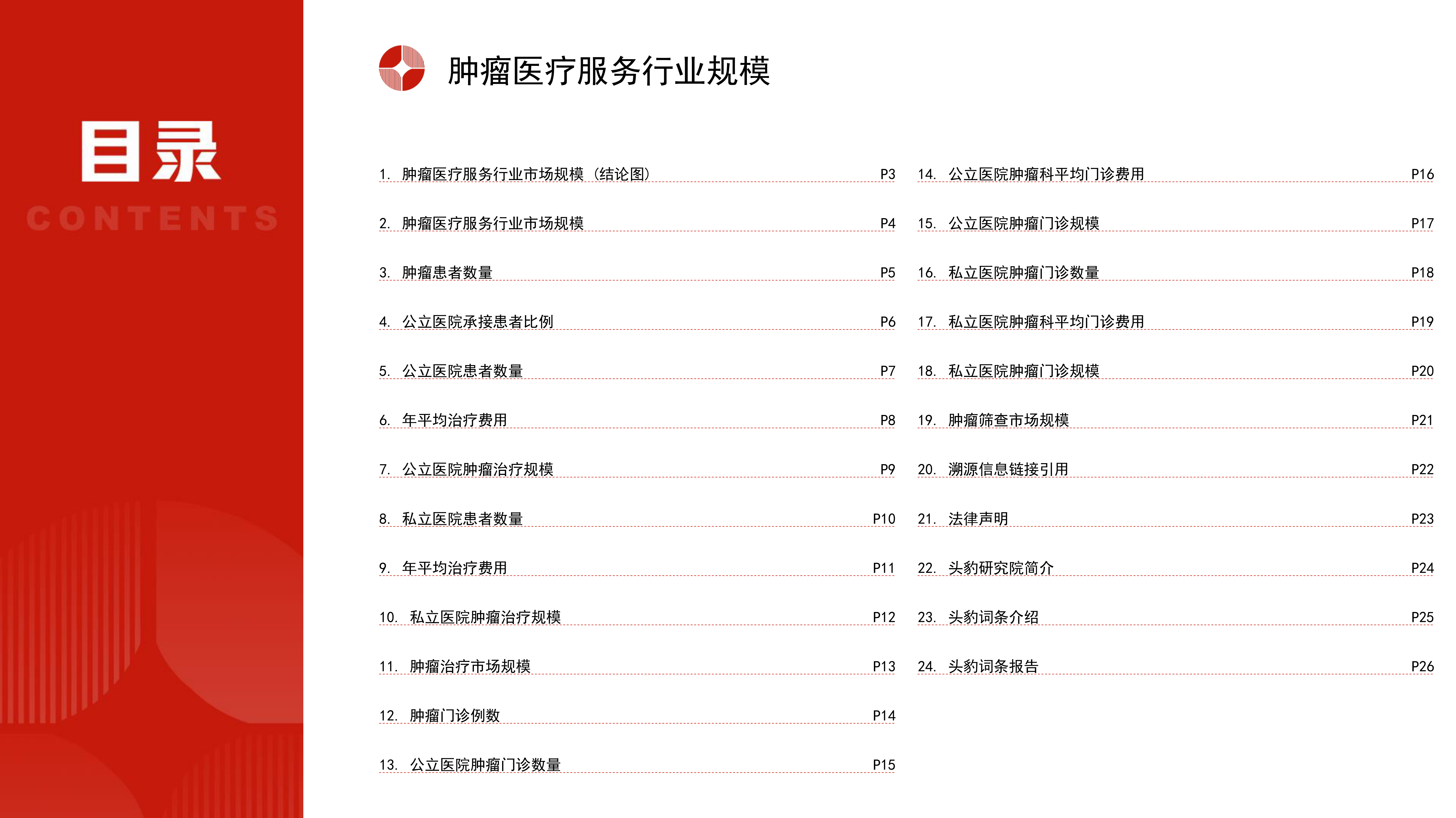 本报告通过构建逻辑模型,对中国肿瘤医疗服务行业市场规模进行了详细的测算。报告的主要内容涵盖以下几个方面: