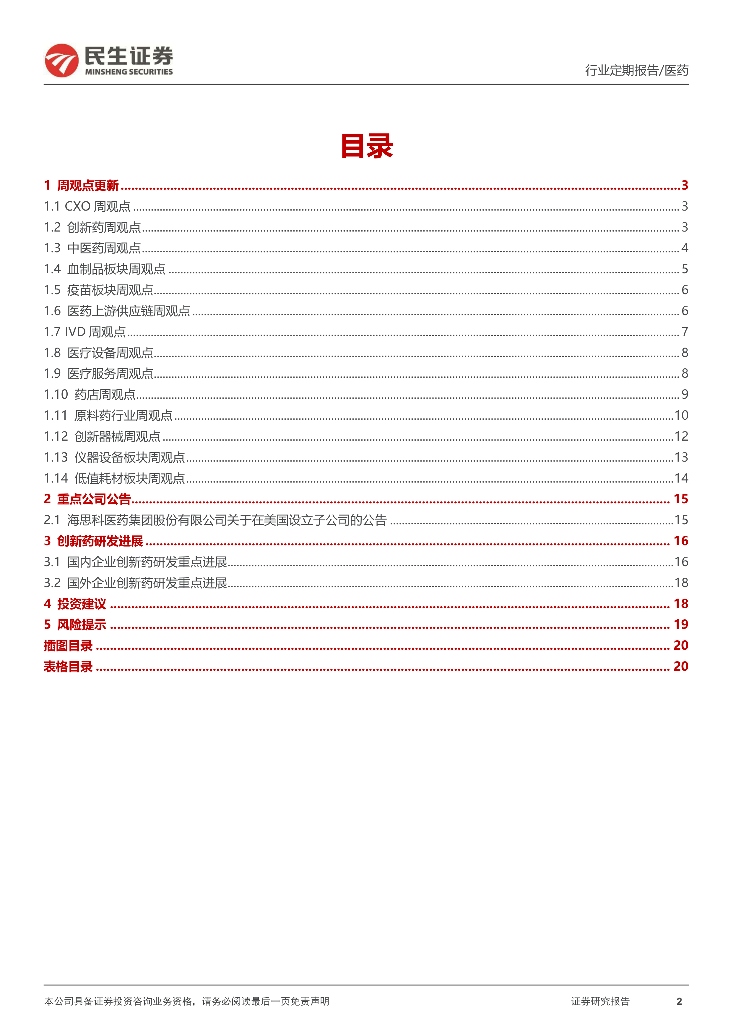 风险提示:集采压力大于预期风险;产品研发进度不及预期风险;竞争加剧风险;政策监管环境变化风险;药物研发服务市场需求下降的风险。