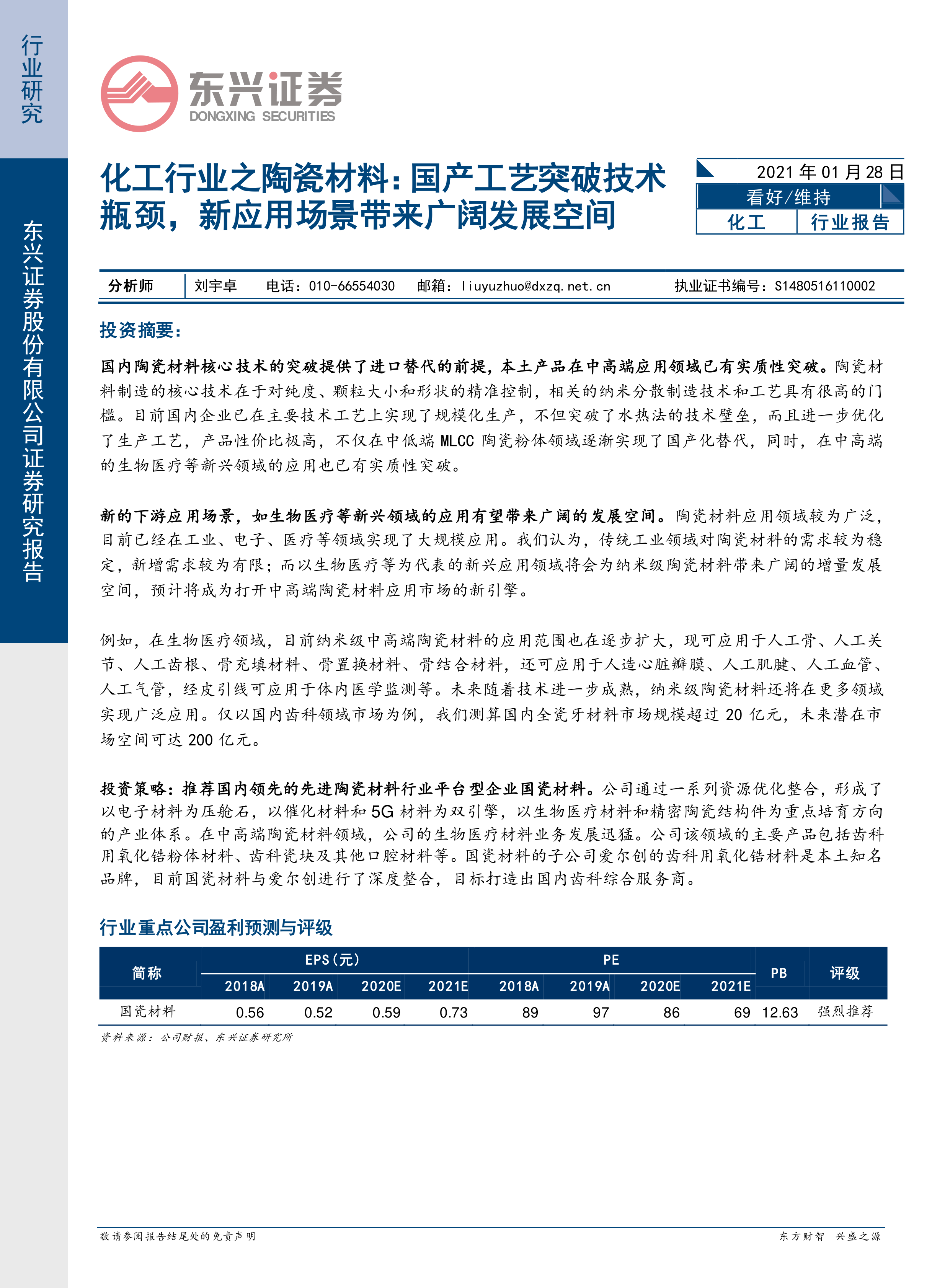 化工行业之陶瓷材料:国产工艺突破技术瓶颈,新应用场景带来广阔发展空间