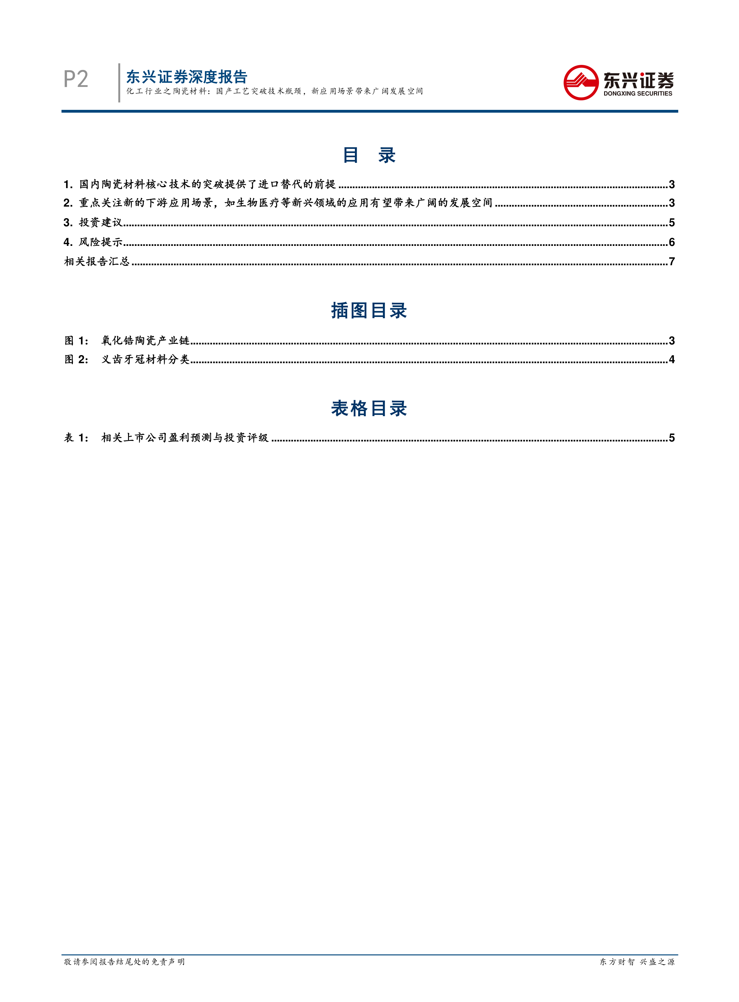 新的下游应用场景,如生物医疗等新兴领域的应用有望带来广阔的发展空间。陶瓷材料应用领域较为广泛,目前已经在工业、电子、医疗等领域实现了大规模应用。我们认为,传统工业领域对陶瓷材料的需求较为稳定,新增需求较为有限;而以生物医疗等为代表的新兴应用领域将会为纳米级陶瓷材料带来广阔的增量发展空间,预计将成为打开中高端陶瓷材料应用市场的新引擎。
