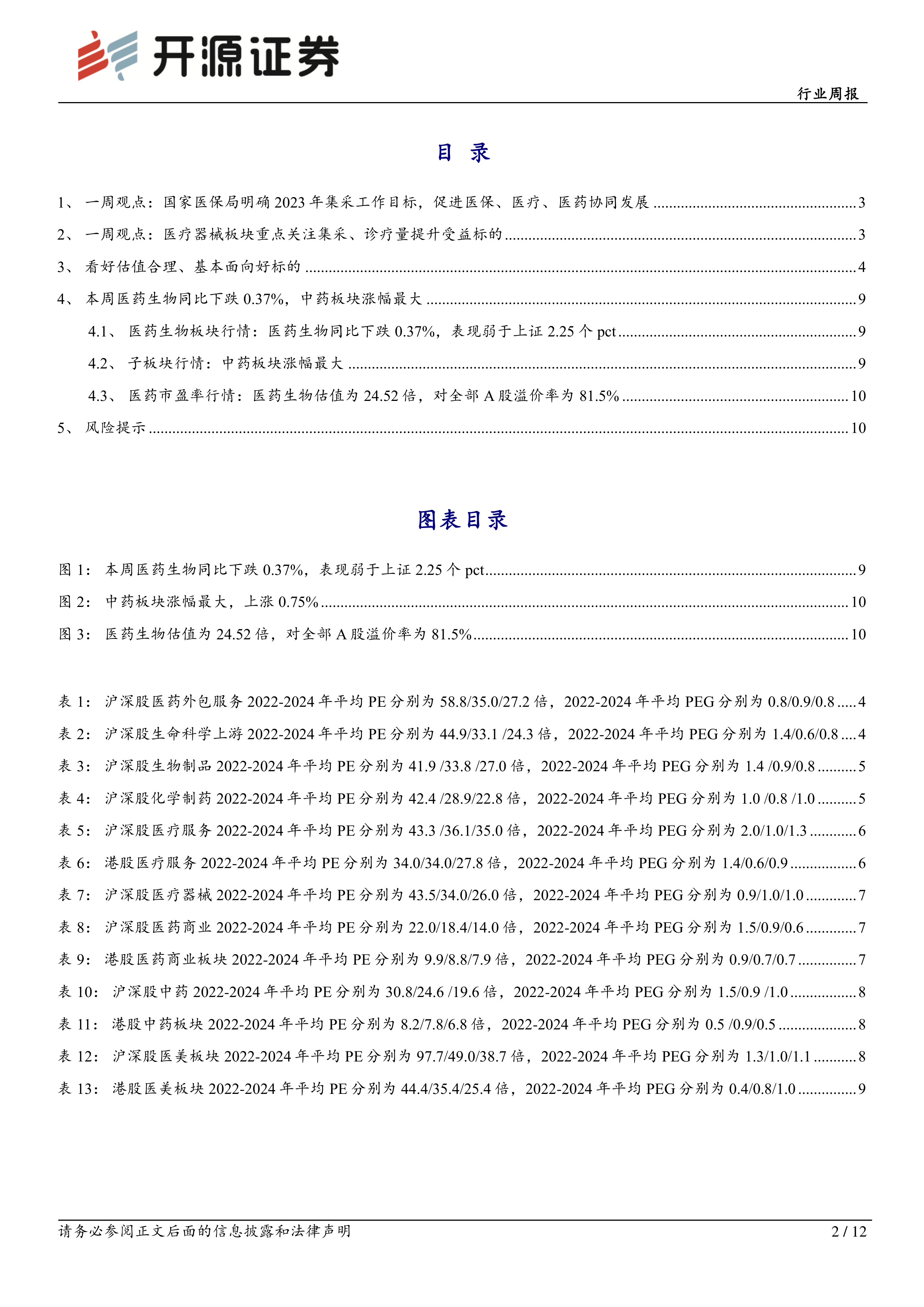本报告基于国家医保局发布的2023年医药集中采购和价格管理工作的通知,对医药生物行业进行了深入的市场分析和投资建议。 报告指出,国家集采政策将持续推进,并向精细化管理方向发展,这将重塑行业竞争格局。 短期内,投资者应关注创新药、创新器械以及国产替代机会;长期来看,医保、医疗、医药协同发展将成为行业发展的主旋律。 报告还提供了详细的各子板块估值分析和市场行情数据,为投资者提供参考。 然而,投资者需注意报告中提到的风险提示,并根据自身情况做出投资决策。