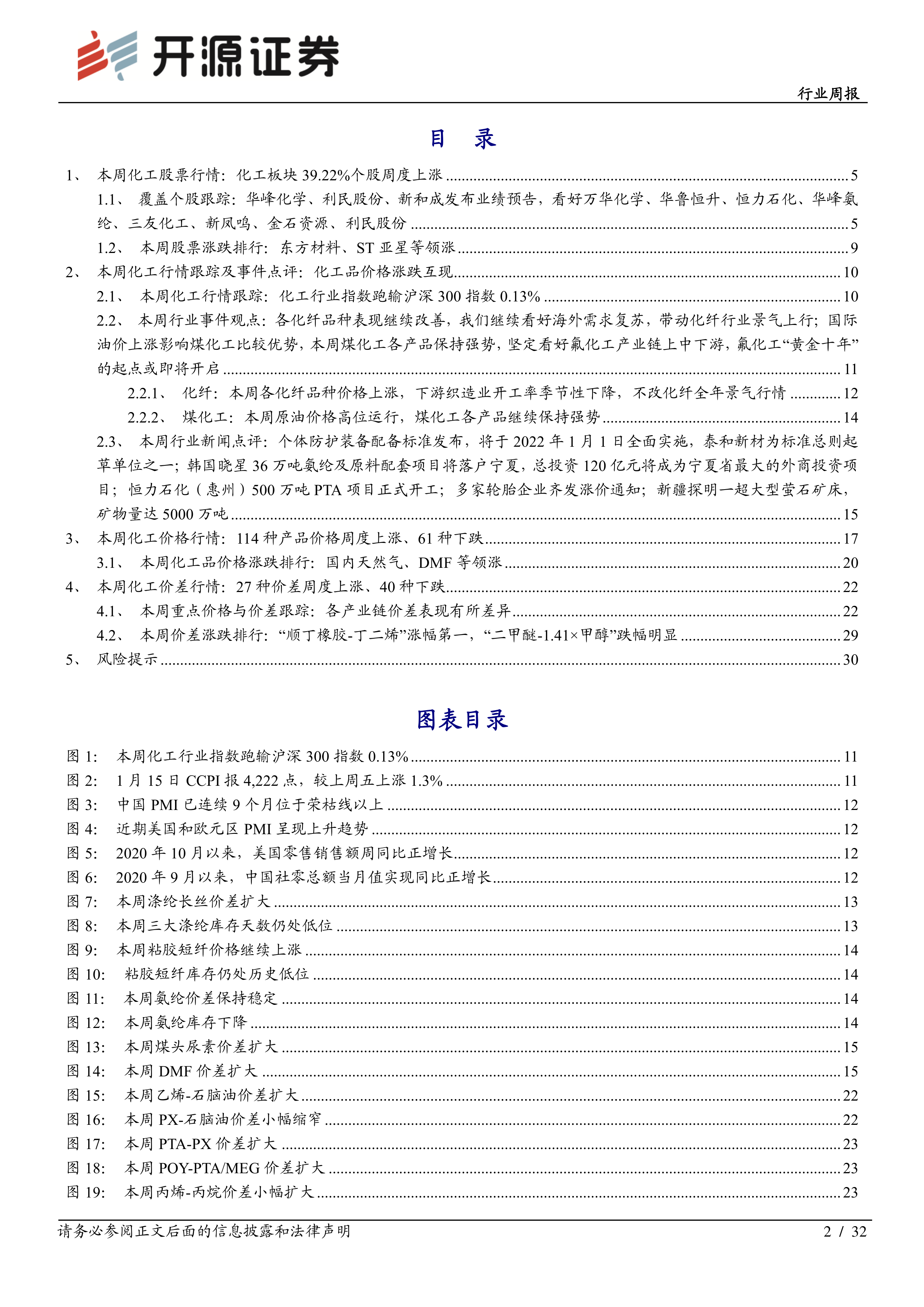 本报告基于公开数据对2021年1月11日至15日一周的化工行业市场行情进行了全面分析。国际原油价格高位运行是推动化工行业景气度提升的主要因素,化纤和煤化工产业链表现尤为突出。报告建议投资者关注并布局相关领域,同时需警惕潜在风险。报告内容涵盖了股票行情、价格行情、价差行情以及行业新闻事件点评等多个方面,为投资者提供了较为全面的市场信息和分析。 需要注意的是,报告中的分析和预测基于一定的假设,投资者应结合自身情况进行独立判断,不应盲目依赖报告结论进行投资决策。