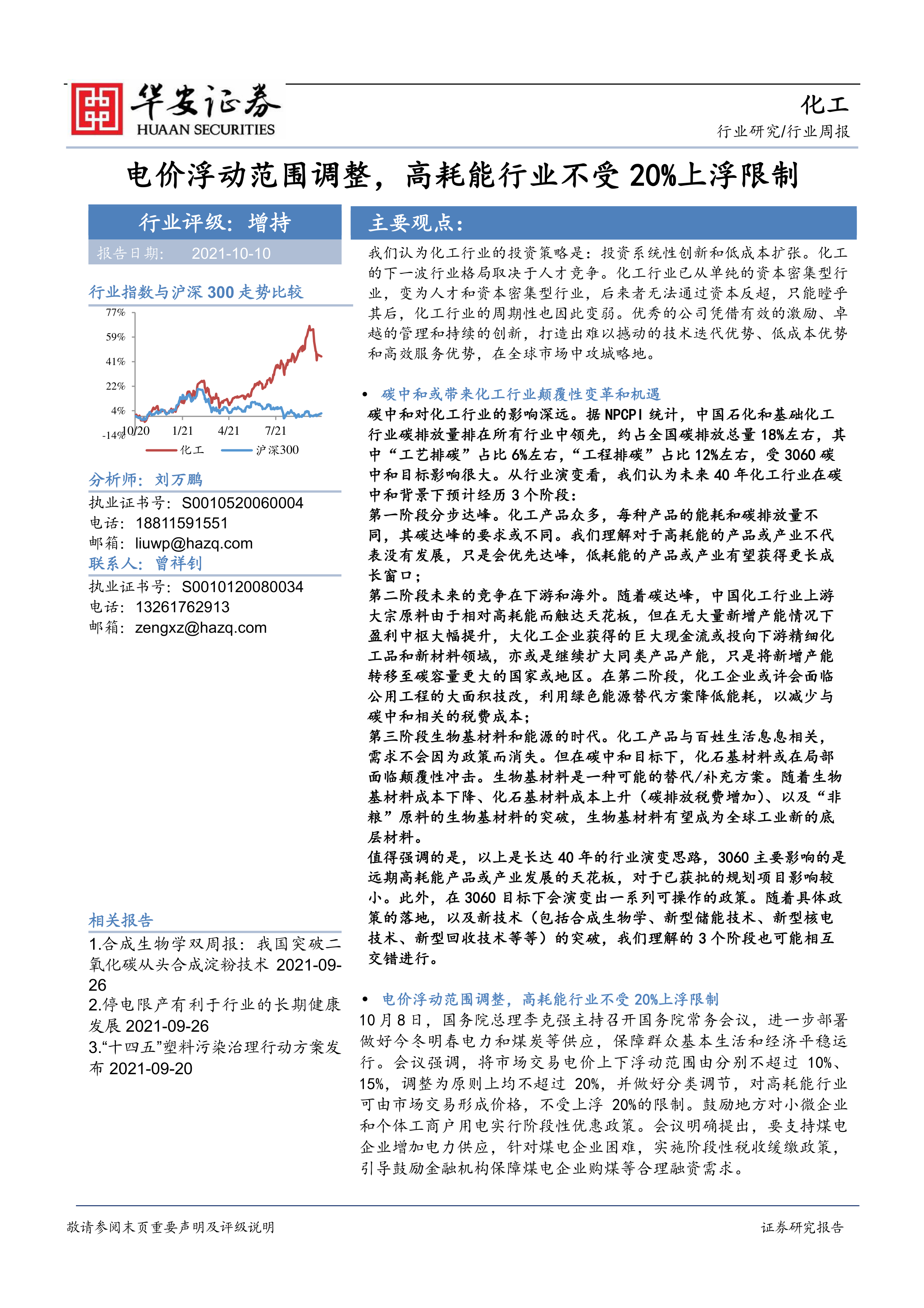 化工行业周报:电价浮动范围调整,高耗能行业不受20%上浮限制