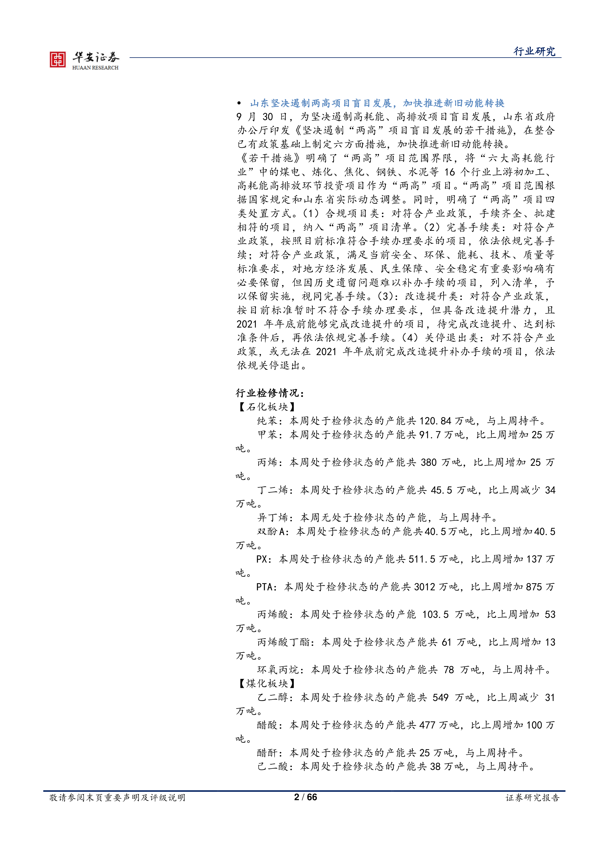 9月30日,为坚决遏制高耗能、高排放项目盲目发展,山东省政府办公厅印发《坚决遏制“两高”项目盲目发展的若干措施》,在整合已有政策基础上制定六方面措施,加快推进新旧动能转换。《若干措施》明确了“两高”项目范围界限,将“六大高耗能行业”中的煤电、炼化、焦化、钢铁、水泥等16个行业上游初加工、高耗能高排放环节投资项目作为“两高”项目。“两高”项目范围根据国家规定和山东省实际动态调整。同时,明确了“两高”项目四类处置方式。(1)合规项目类:对符合产业政策,手续齐全、批建相符的项目,纳入“两高”项目清单。(2)完善手续类:对符合产业政策,按照目前标准符合手续办理要求的项目,依法依规完善手续;对符合产业政策,满足当前安全、环保、能耗、技术、质量等标准要求,对地方经济发展、民生保障、安全稳定有重要影响确有必要保留,但因历史遗留问题难以补办手续的项目,列入清单,予以保留实施,视同完善手续。(3):改造提升类:对符合产业政策,按目前标准暂时不符合手续办理要求,但具备改造提升潜力,且2021年年底前能够完成改造提升的项目,待完成改造提升、达到标准条件后,再依法依规完善手续。(4)关停退出类:对不符合产业政策,或无法在2021年年底前完成改造提升补办手续的项目,依法依规关停退出。