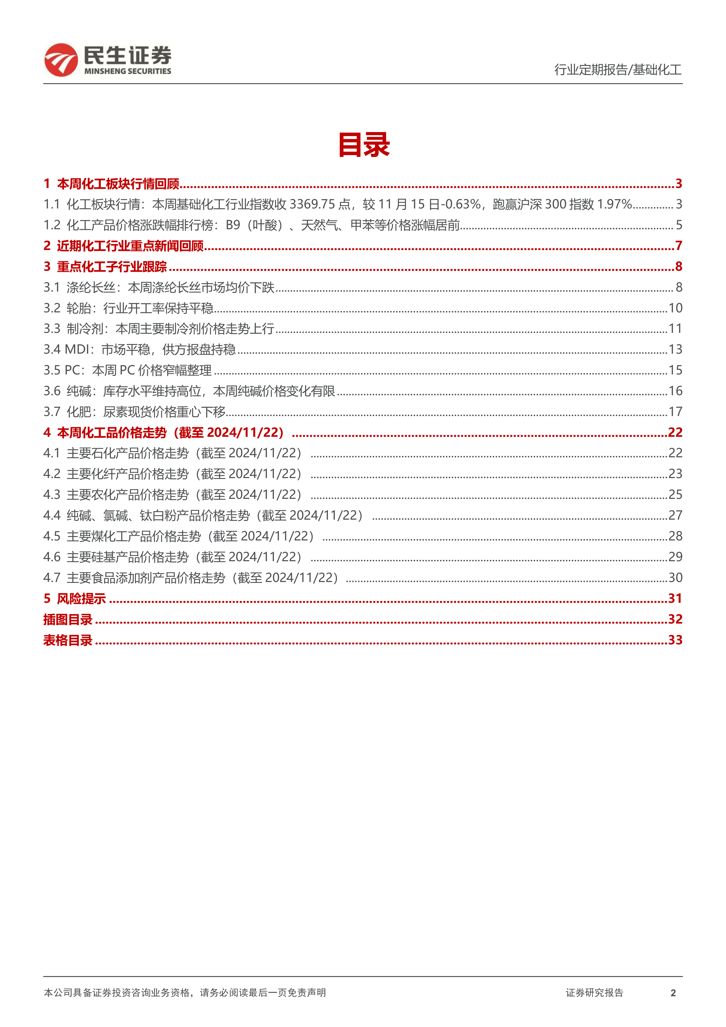 本报告涵盖了2024年11月18日至2024年11月24日期间的化工行业市场动态,主要内容包括: