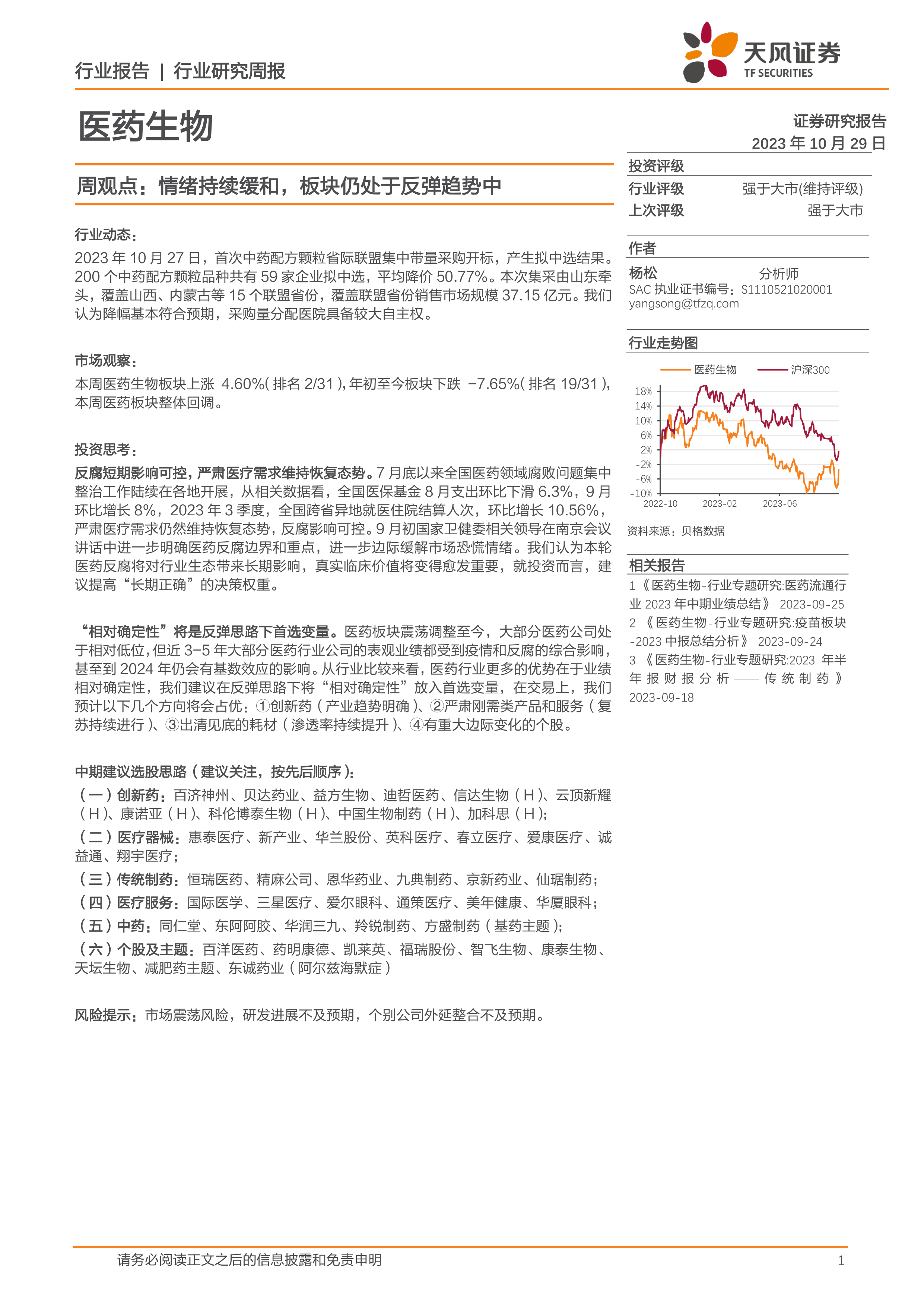 医药生物周观点:情绪持续缓和,板块仍处于反弹趋势中