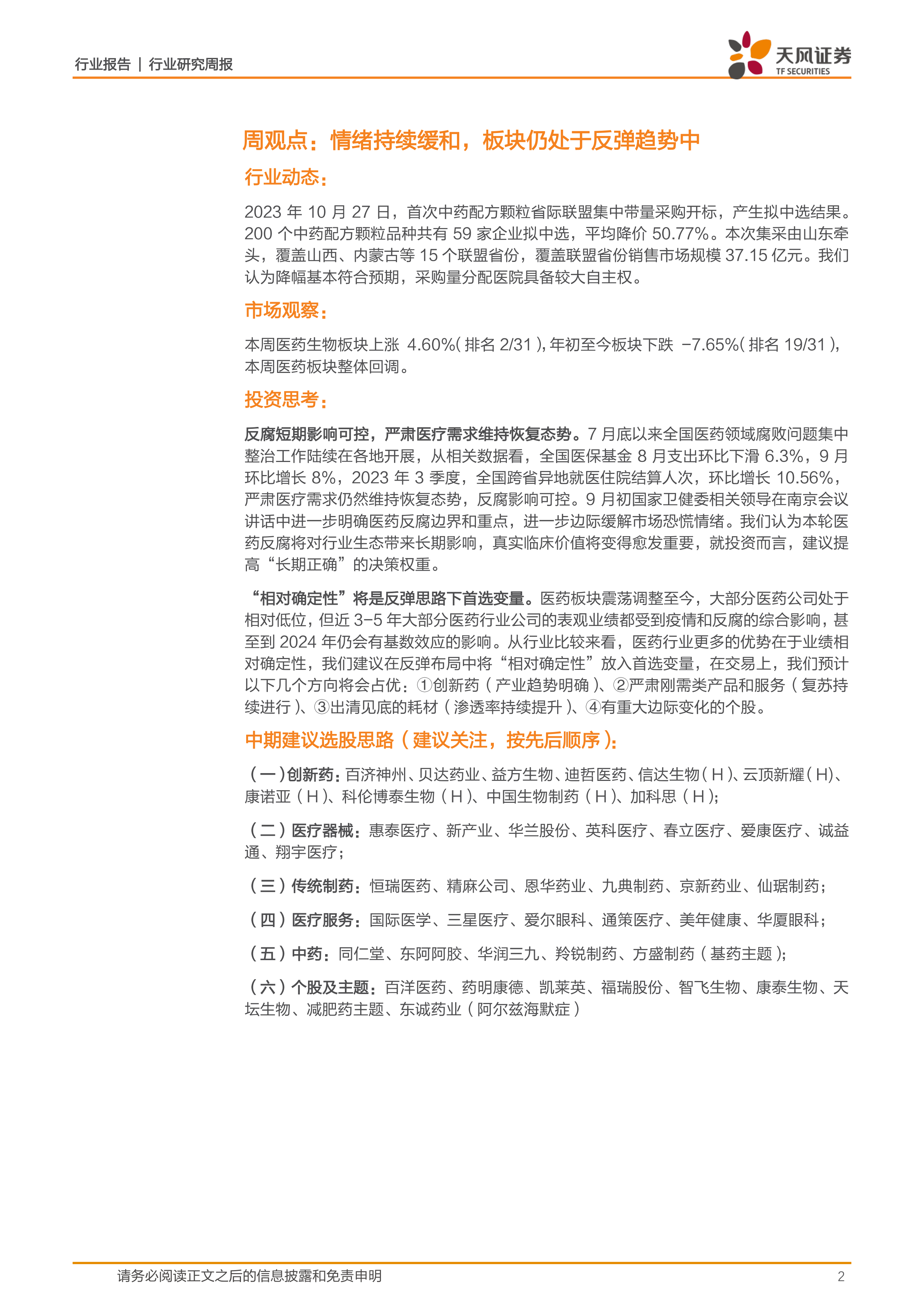 本报告为医药生物行业研究周报,主要内容包括行业动态、市场观察、投资思考以及中期建议选股思路。