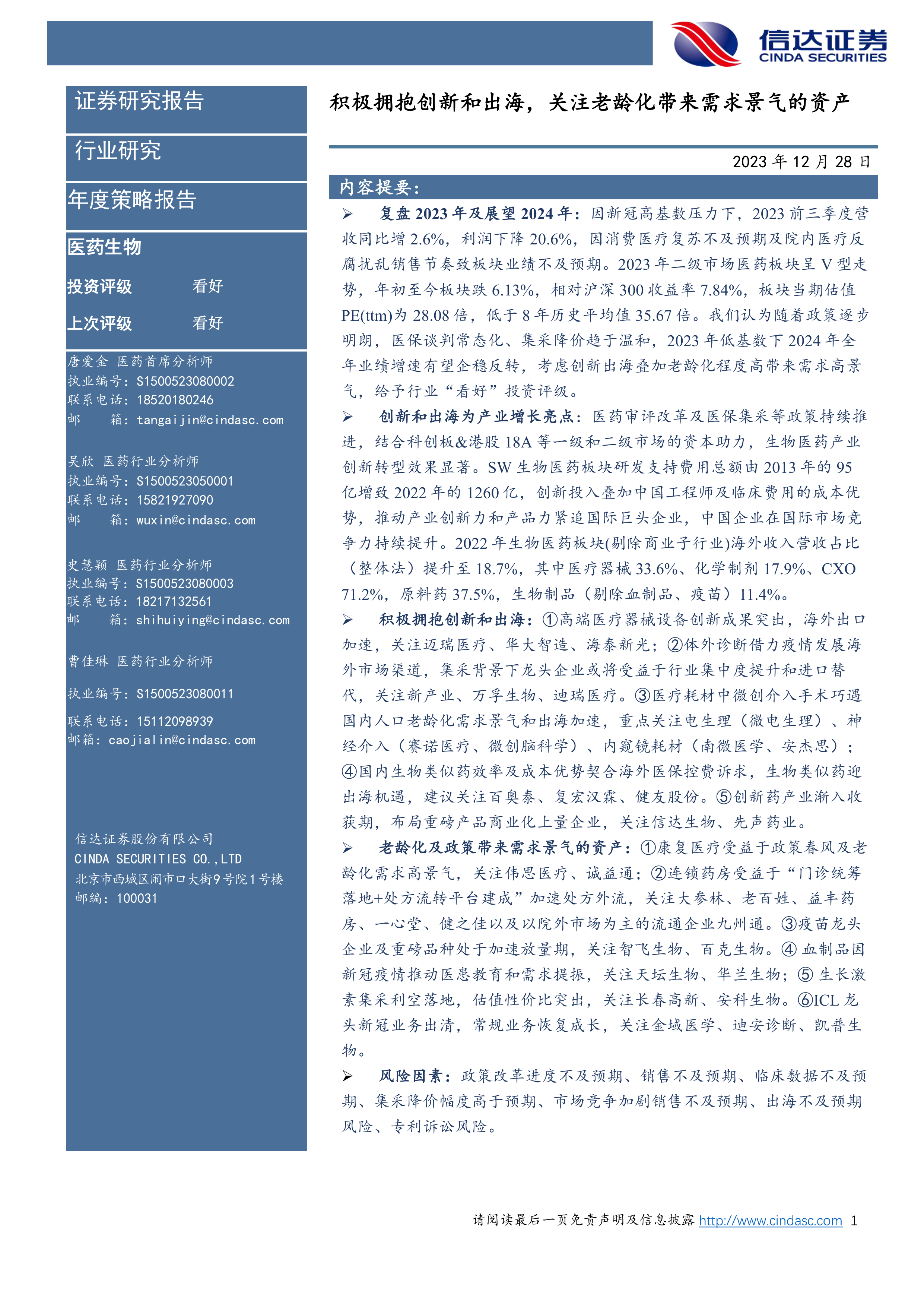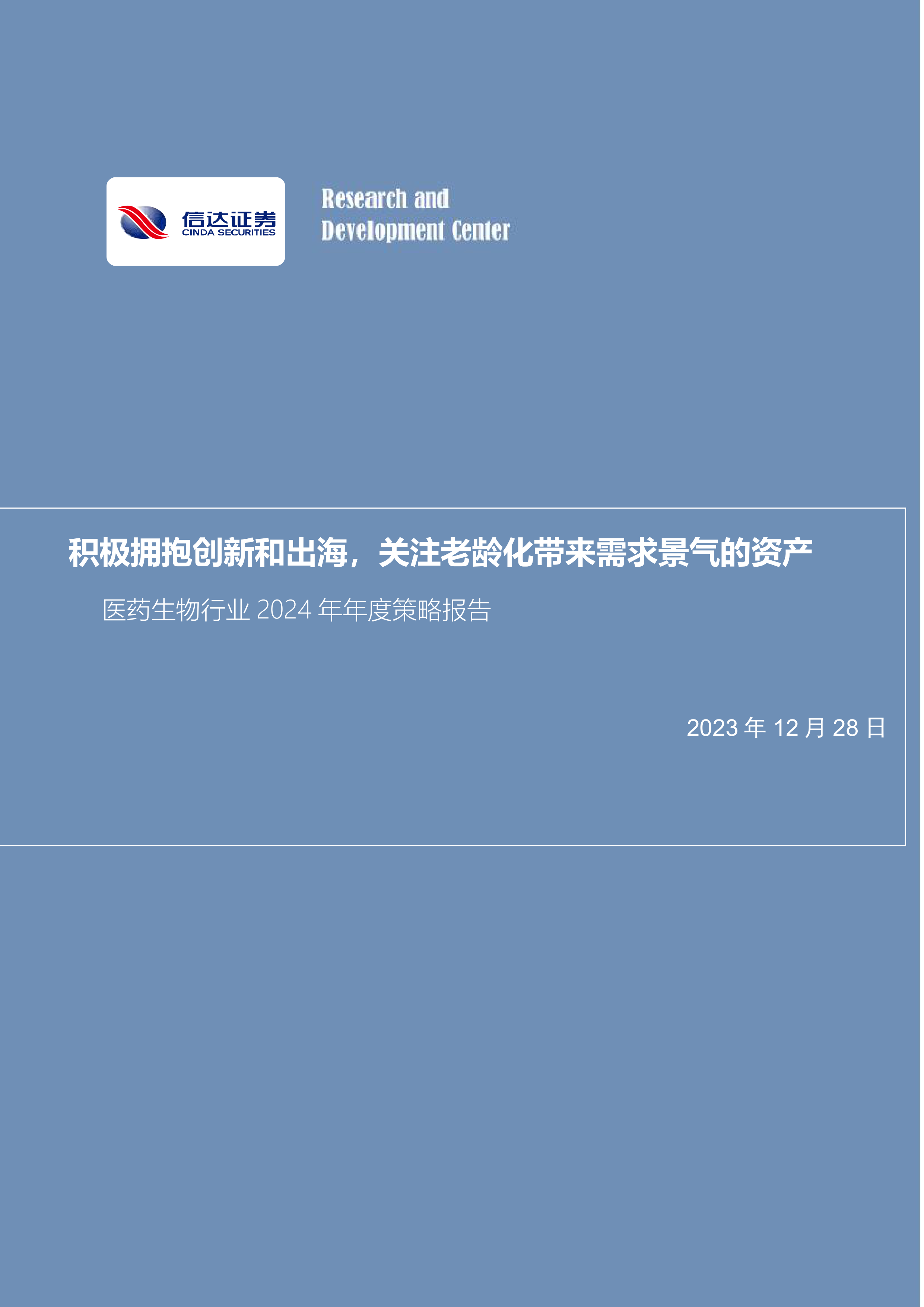 医药生物行业2024年年度策略报告:积极拥抱创新和出海,关注老龄化带来需求景气的资产