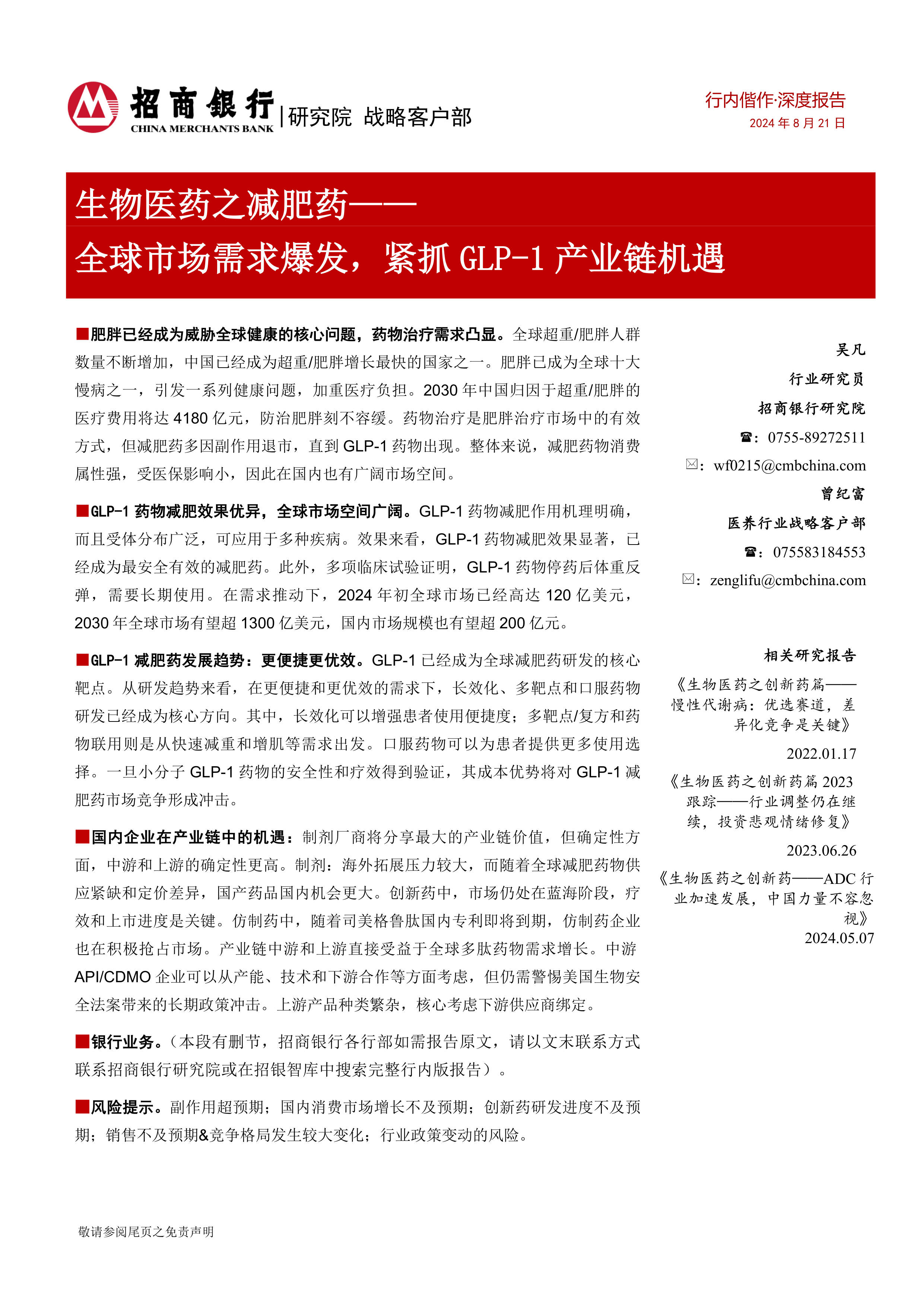 生物医药之减肥药:全球市场需求爆发,紧抓GLP-1产业链机遇